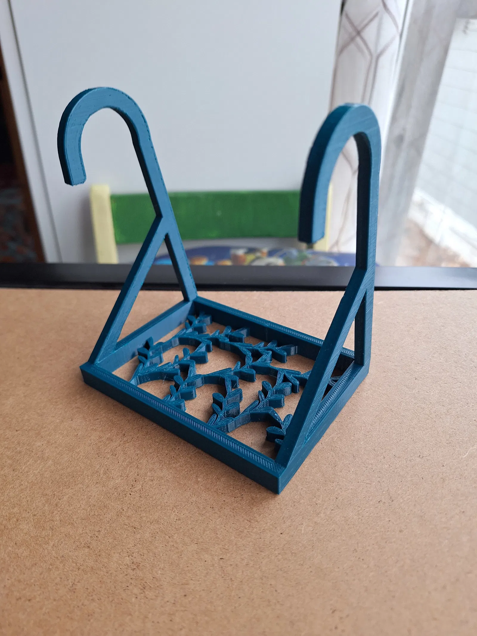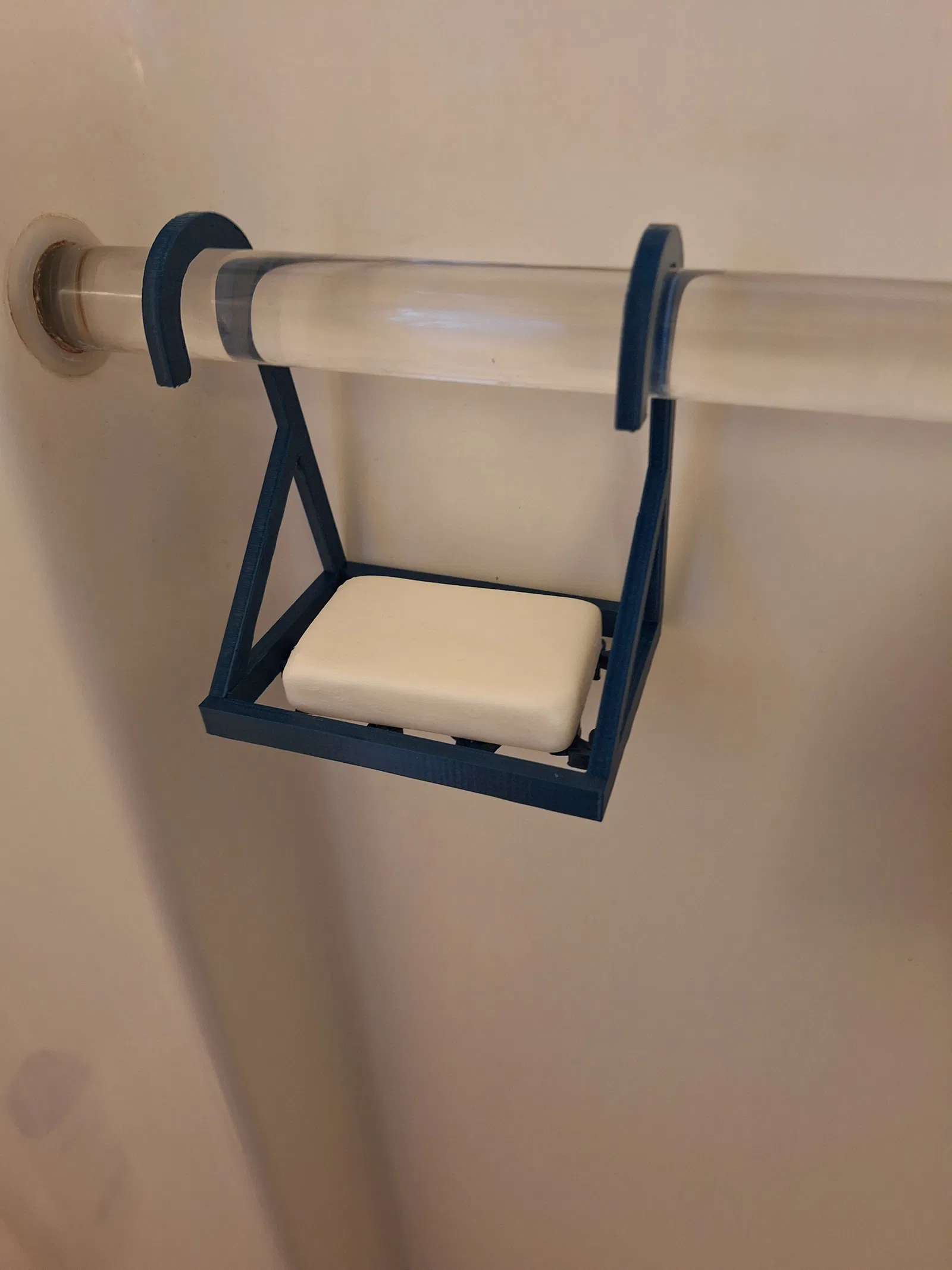 Đây là một soap caddy để treo lên thanh (rod) đường kính 3cm trong phòng tắm. Phần đáy có thiết kế hình lá dễ thương, giúp nước thoát qua. Viền cao thêm nửa centimet giúp xà phòng không bị trượt ra ngoài nếu lỡ va phải. Khi treo lên thì cân bằng, không bị nghiêng. Đựng vừa một bánh xà phòng cỡ tiêu chuẩn, vẫn còn dư chút khoảng trống quanh mép.