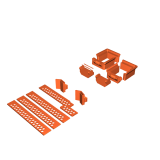 Riser “all-in-one” cho K1C gồm 2 tấm, betweeners, góc, bản lề, chặn bản lề và chốt bản lề. Có betweeners dạng vented giúp vẫn đóng nắp/cửa và in PLA ổn; khuyến nghị in góc bằng PETG.