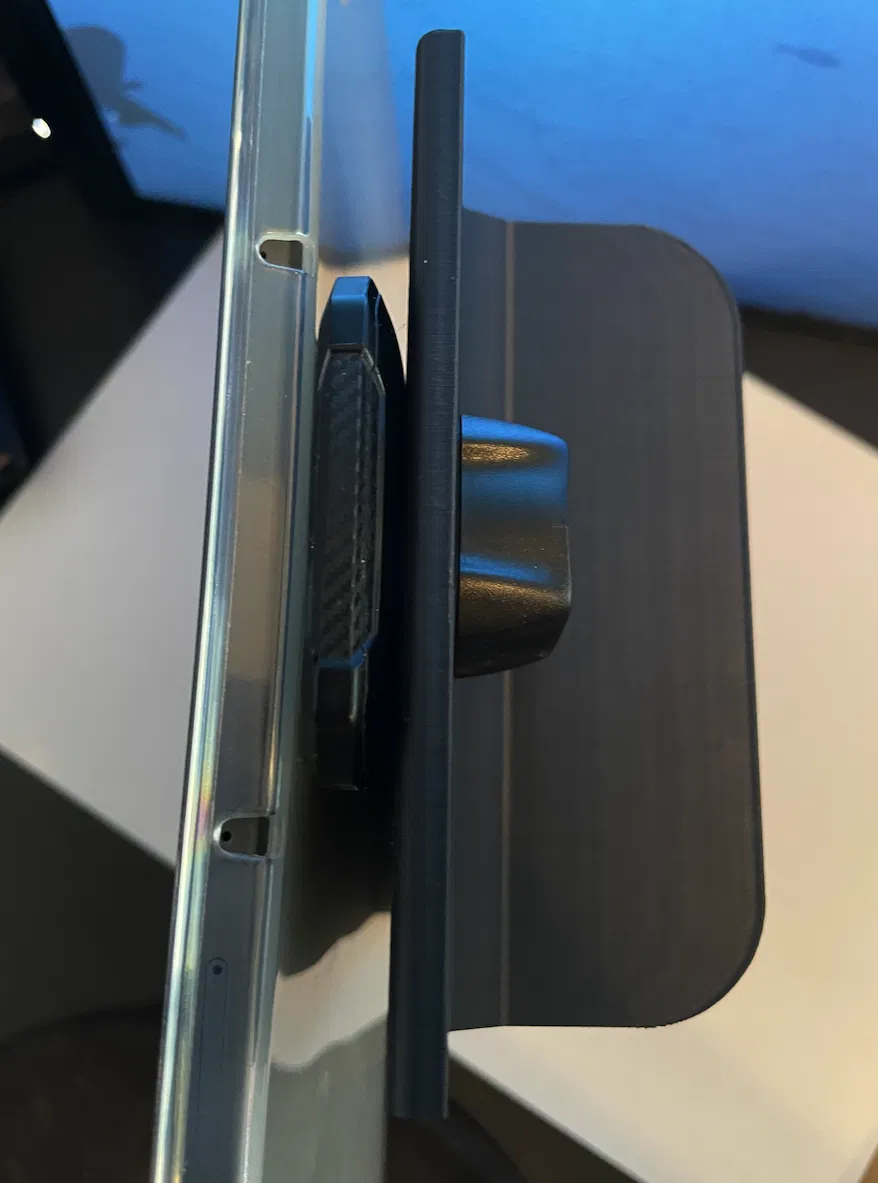Vì mình không còn xài khe CD nữa, nên mình thiết kế một bộ mount gắn vừa khít ngay chỗ đó. Phần trên có nam châm giữ tablet chắc chắn, còn hệ bracket thì tận dụng đúng phần miệng khe CD.