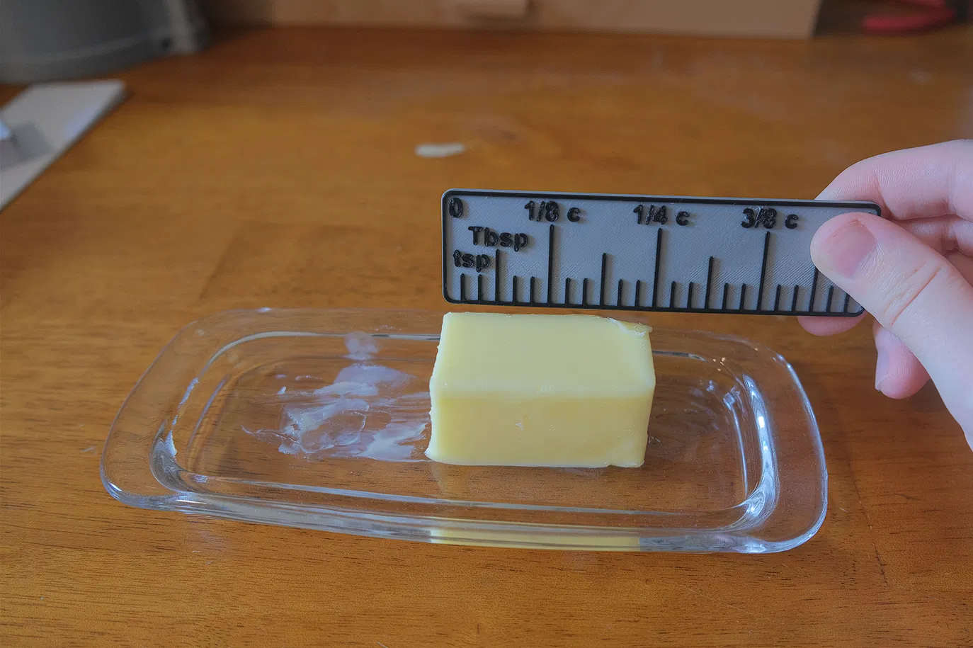 Đây là một công cụ nhà bếp để đo lường số lượng bơ để cắt cho một công thức.