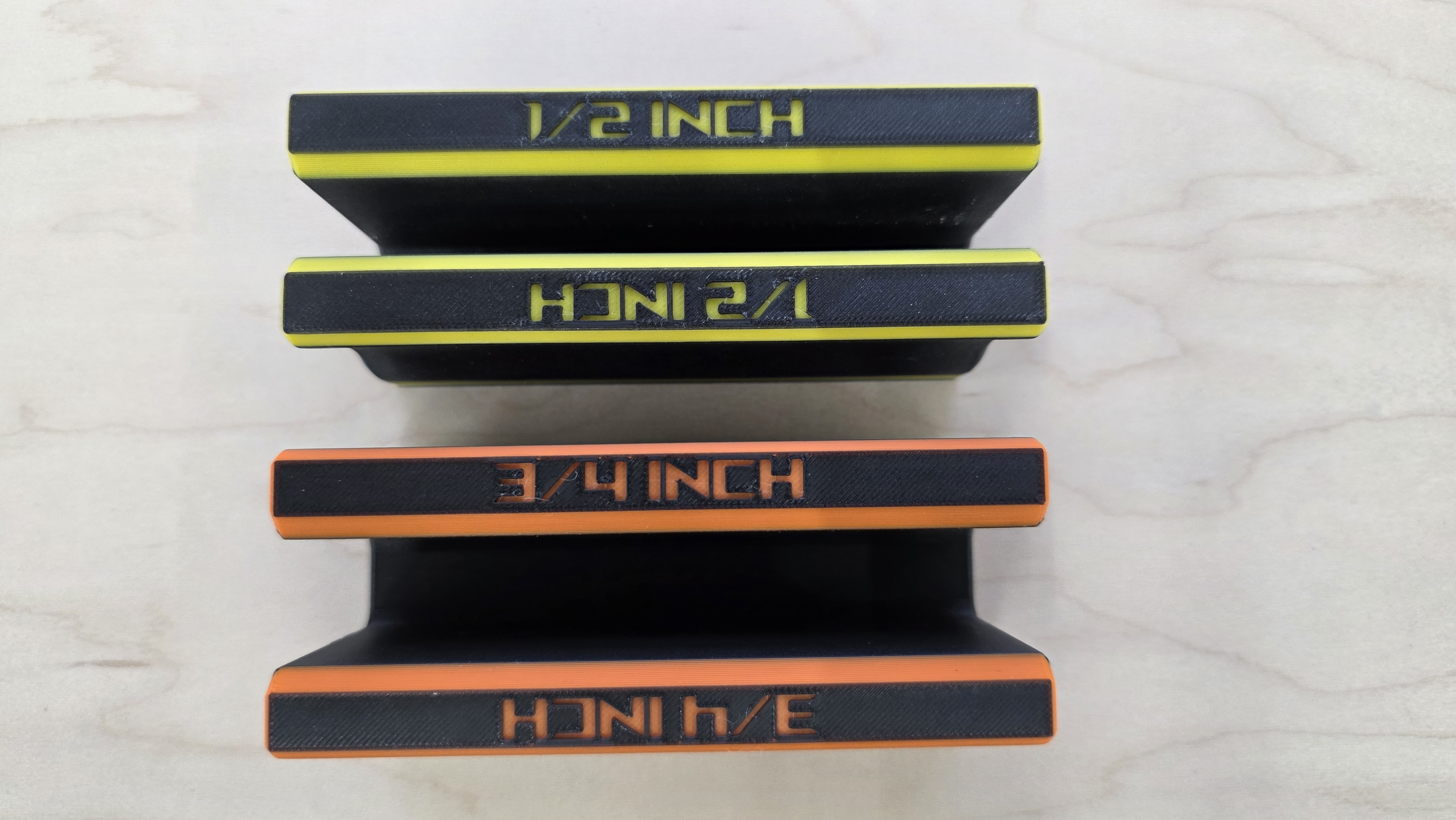 Mình có 2 kích cỡ: một cho 1/2" và một cho 3/4". Nó cũng dùng được với 7/16" và 5/8", nhưng nếu cần thì bạn có thể scale kích thước cho phù hợp.