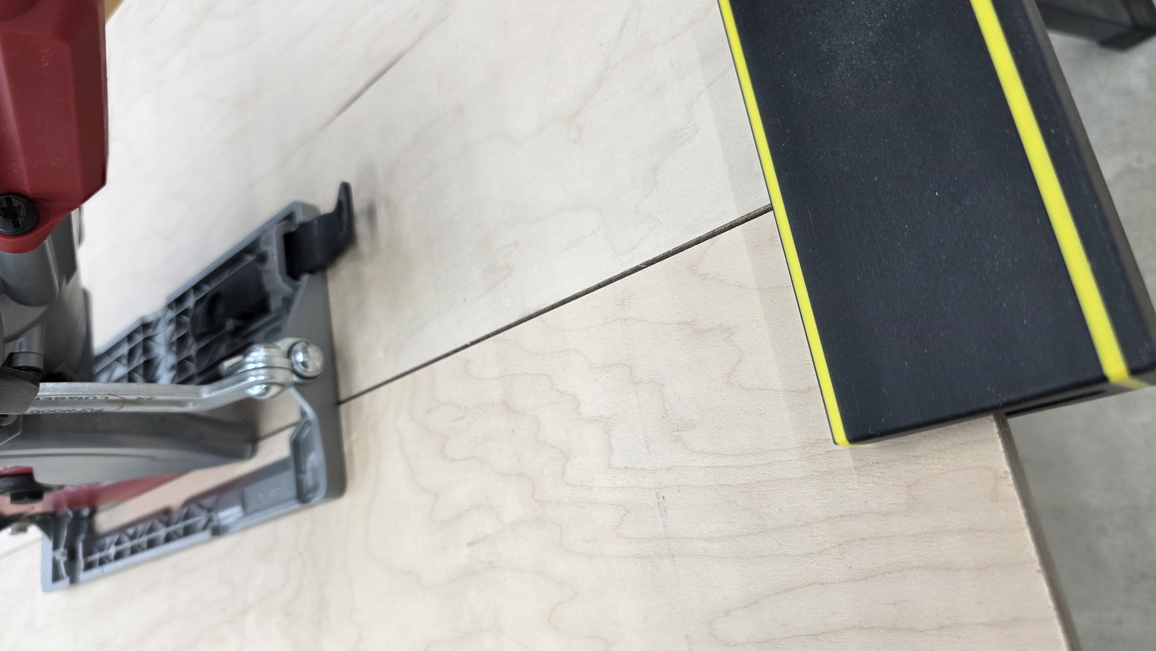 Nếu bạn từng cắt một tấm plywood dài trên ngựa cưa (saw horses) mà phần đầu bạn bắt đầu cắt không được đỡ chắc, nó có thể bị sụp xuống và kẹt lưỡi cưa, hoặc thậm chí bể/gãy nếu không được hỗ trợ tốt. Nên mình thiết kế món này để hỗ trợ việc cắt các tấm dài.