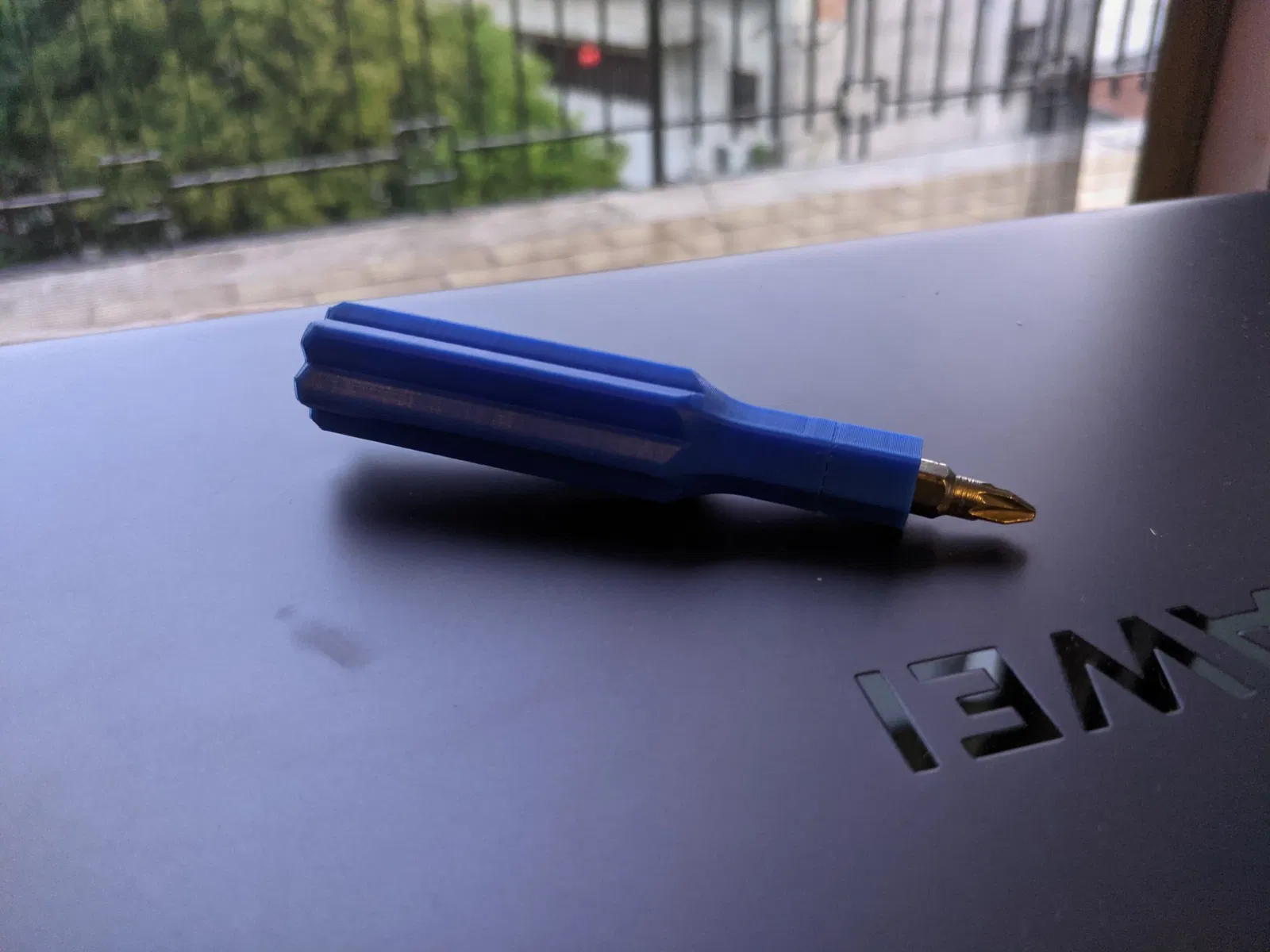 Đây là một tuốc nơ vít nhỏ và cứng đầu với một nam châm nhúng ở đầu. Nó có một lỗ mở cho các bit hex tiêu chuẩn.