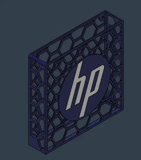 Mẫu giá treo tường cho mini PC HP EliteDesk, có logo HP. Thiết kế theo kích thước 18 x 18 x 4 cm; tương thích G3 720, G3-800 và các máy khác có cùng kích thước. In PLA hoặc PETG, dùng tree support cho logo.