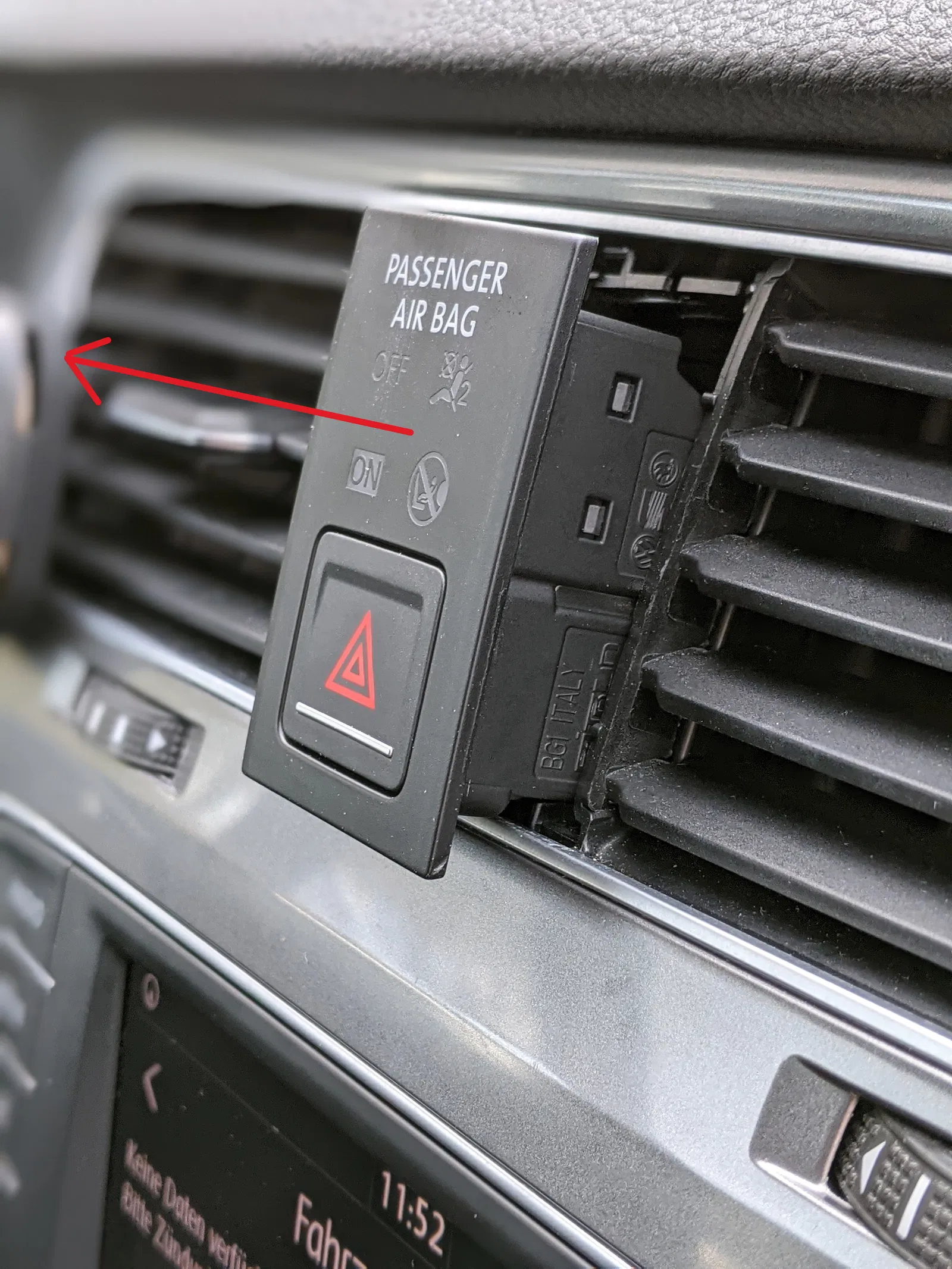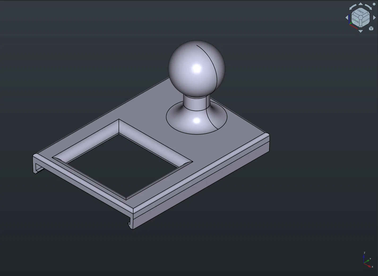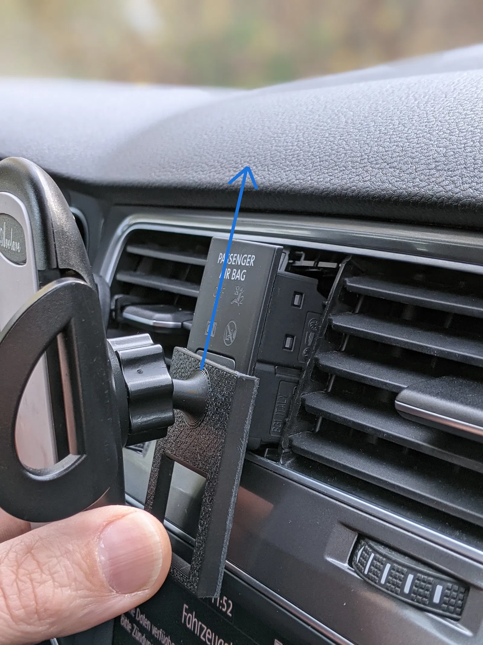 Adapter gắn kẹp điện thoại cho Volkswagen Golf MK7, lắp vào vị trí công tắc hazard. Có 2 bản: V4 ball joint thẳng và V5 ball joint nghiêng, đường kính ball joint 16,5mm. Khuyến nghị in PETG khi trời nóng.