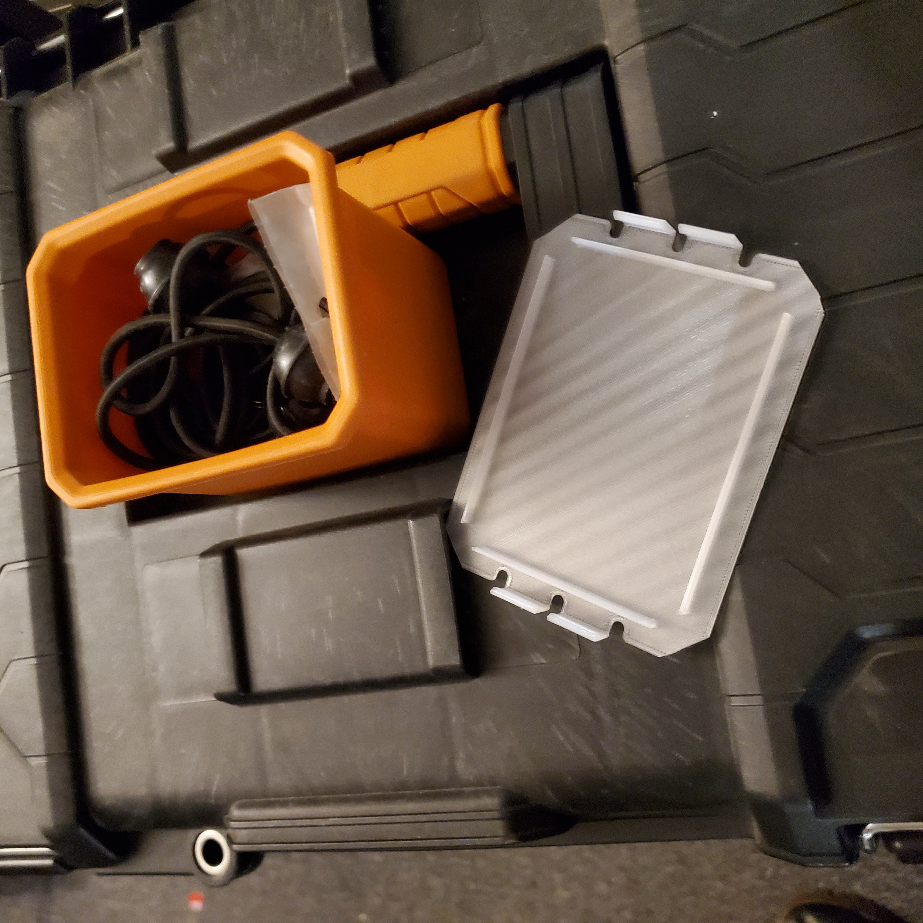 Thiết kế nắp cho các ngăn nhỏ của Ridgid Pro Gear 22" system 1.0 (đời đầu không có nắp). Không dùng được với clear top organizer. Có bản nâng cấp cứng hơn, ngàm kẹp bám tốt; khuyên in PETG.