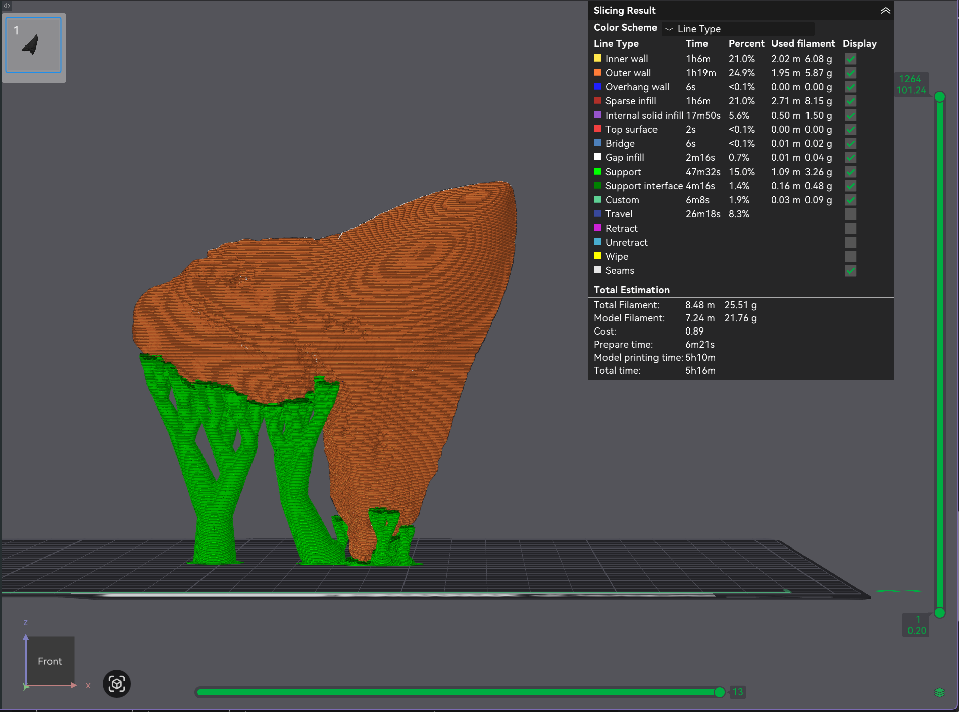 Góc 45 độ và dùng tree supports với ngưỡng khoảng 43 độ.