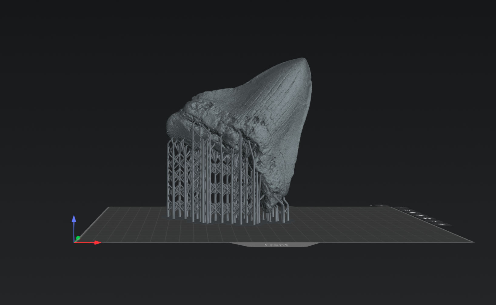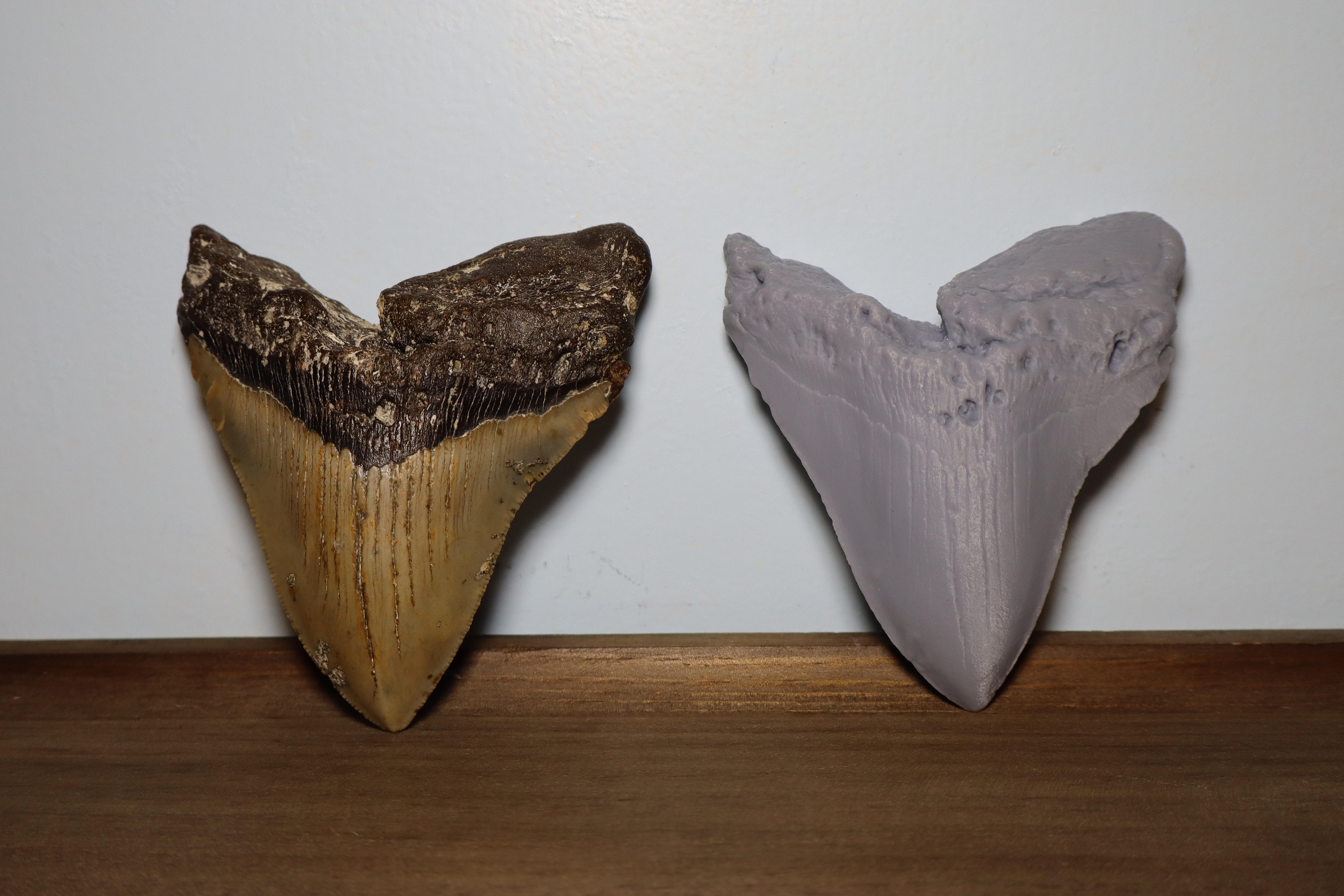 Bản scan photogrammetry độ chi tiết cao của răng Megalodon, dựng từ 137 ảnh. Đã xử lý trong RealityScan và làm sạch bằng Blender. Kèm gợi ý hướng đặt in 45° với tree supports (ngưỡng ~43°), phù hợp cả resin.