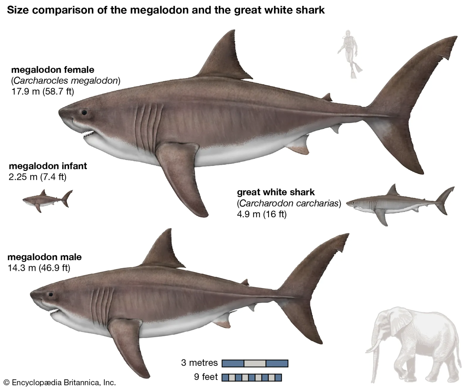 • Hóa thạch của Megalodon đã được tìm thấy ở mọi châu lục, trừ Nam Cực.