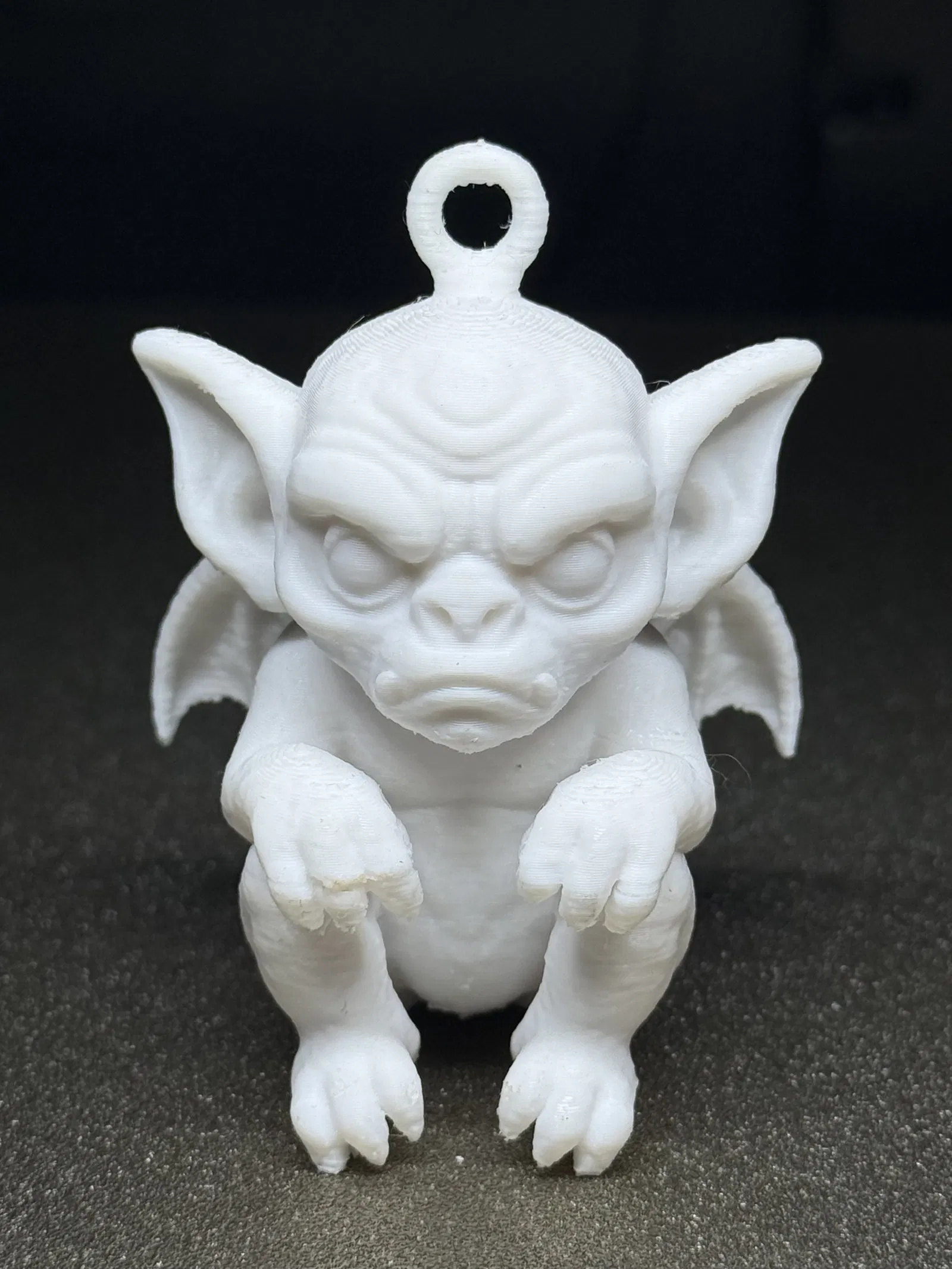 Mẫu đồ trang trí in 3D bản gốc này là một “bé” sinh vật kiểu gargoyle nhỏ, dáng lùn chắc nịch, tai to quá khổ, cánh tí hon, bàn chân có móng vuốt và gương mặt lúc nào cũng kiểu không mấy hài lòng. Vừa dễ thương vừa rờn rợn, lại đầy cá tính—rất hợp cho ai thích mùa lễ theo phong cách fantasy tối màu.
