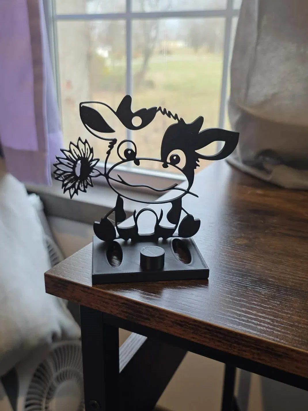 Bản remix con bò được chỉnh thành giá đỡ điện thoại. Lưu ý: khi kẹp/đỡ các dòng điện thoại kích thước lớn, thân bò có thể bị cong xuống trong lúc sử dụng.