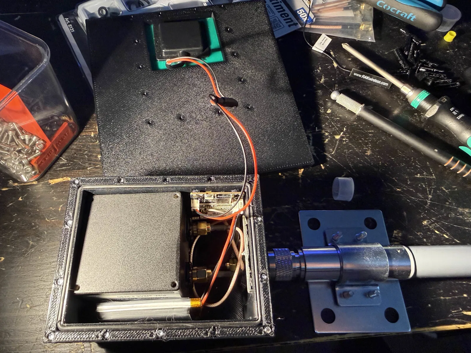 Parts needed: RAK19003 board với module LoRA LiPO Batterypack (mình dùng loại 2000mAh) Tấm pin solar 145x145mm 5V Đầu nối n-type to SMA dạng chassi connector Cáp ipex to SMA Cáp SMA to SMA Cavity filter cho 868Mhz