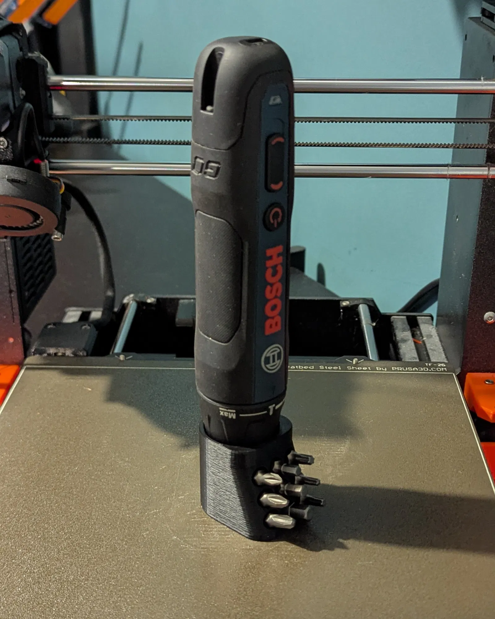 Kệ để bàn cho Bosch GO/GO2, giúp đặt tua vít dựng đứng gọn gàng. Có ngăn chứa 9 mũi bits phía trước và vẫn để được 1 mũi bit trên tua vít khi cắm vào kệ. Gợi ý in: 0.2mm, infill 15%, không support.
