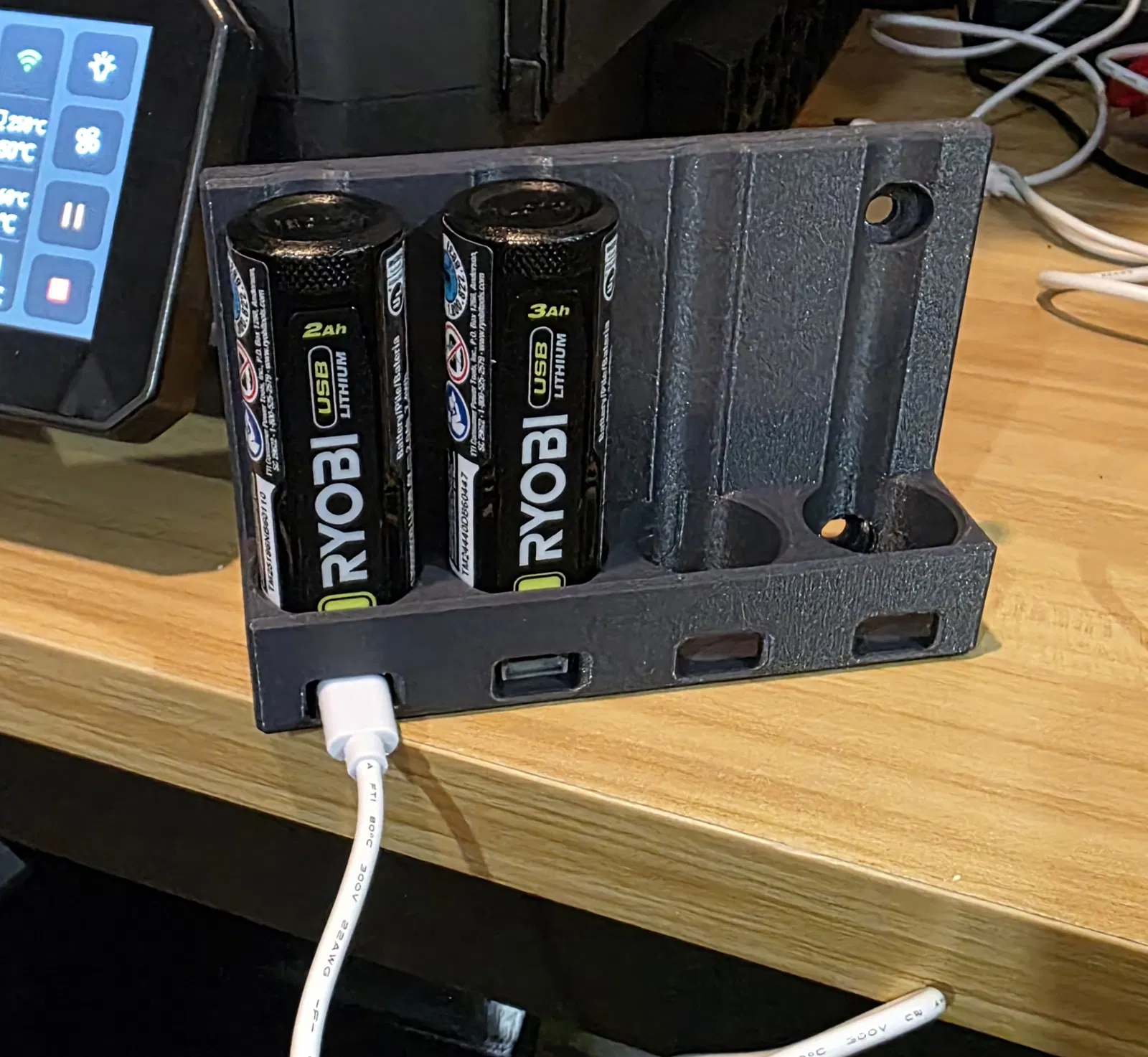 Mẫu giá đỡ pin dành cho pin Ryobi USB 4V, giúp cố định pin gọn gàng và dễ lấy ra sử dụng. Phù hợp để in 3D và lắp đặt trong góc làm việc hoặc hộp đồ nghề.