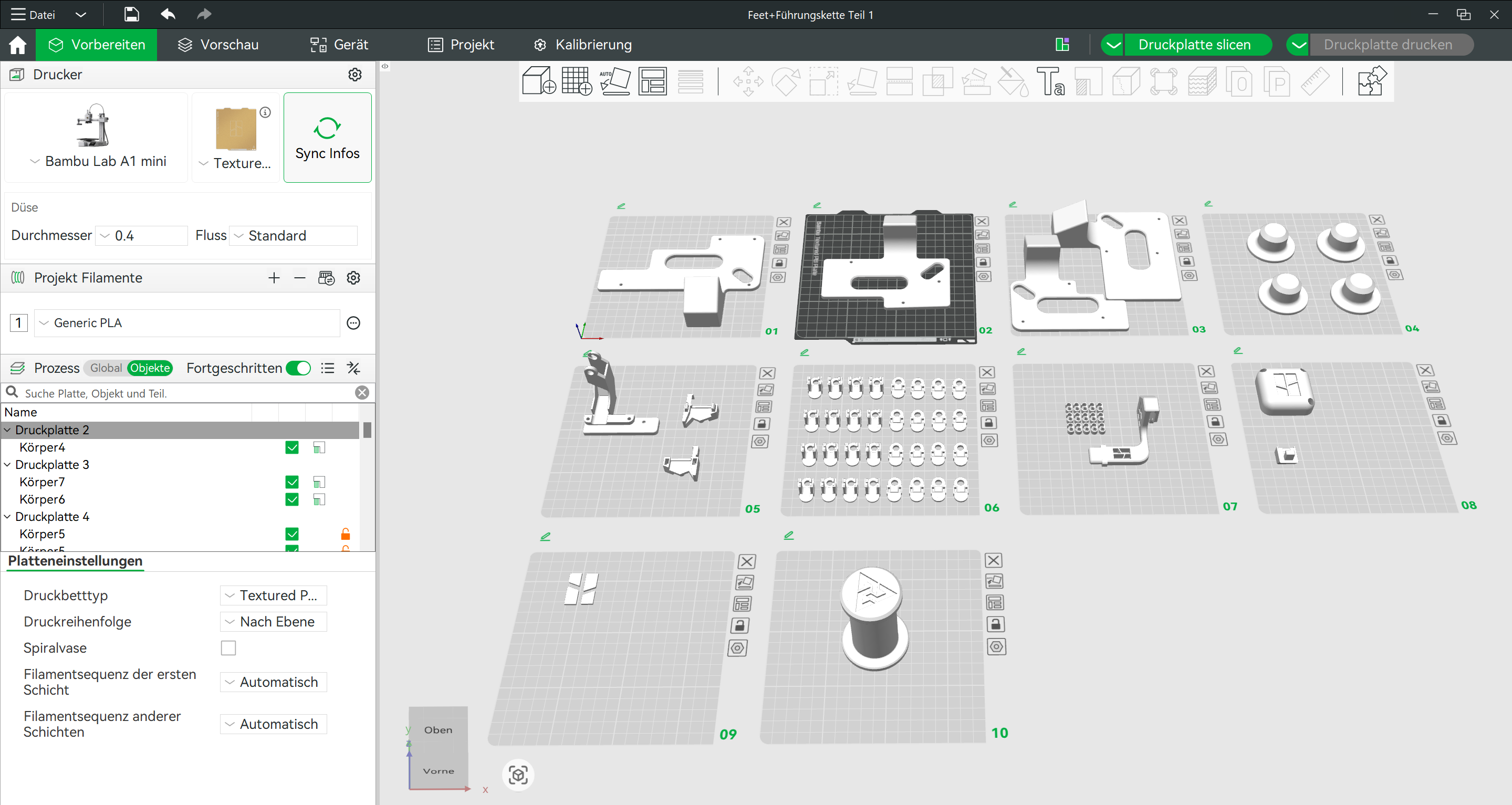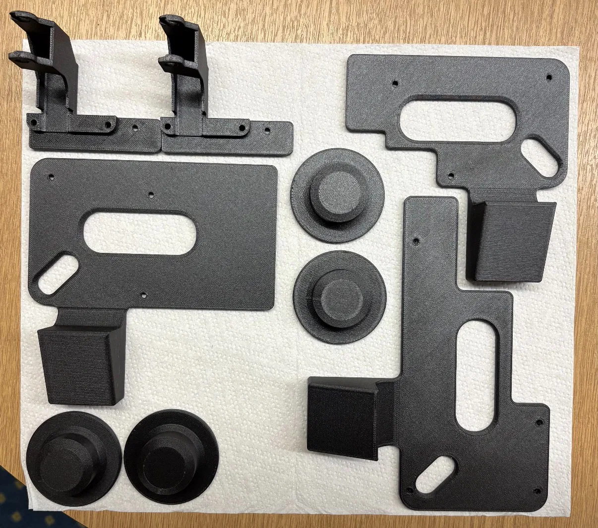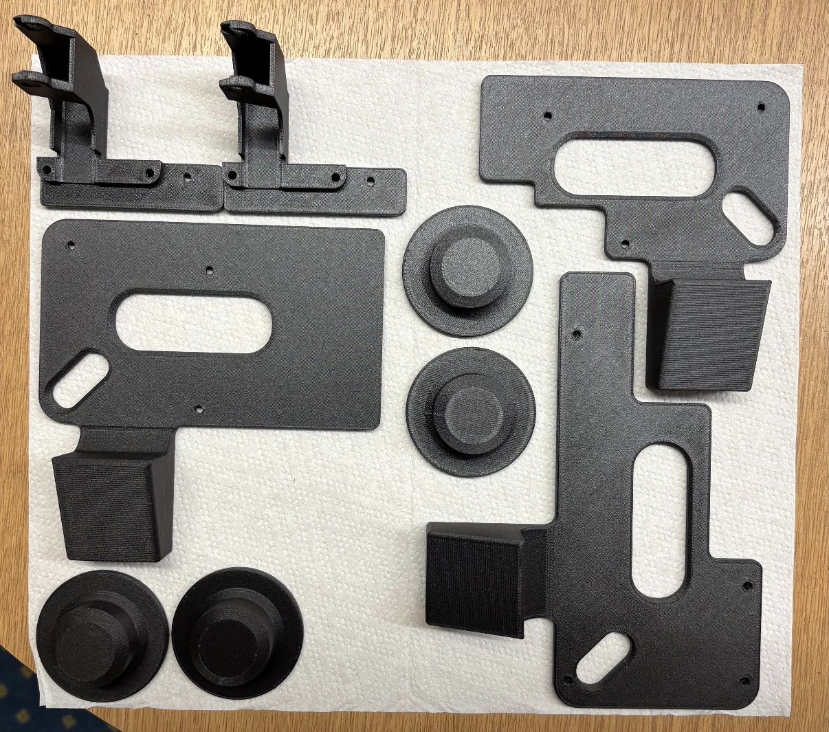 Tất cả chi tiết có thể in bằng PLA hoặc PETG-GF tùy nhu cầu.
