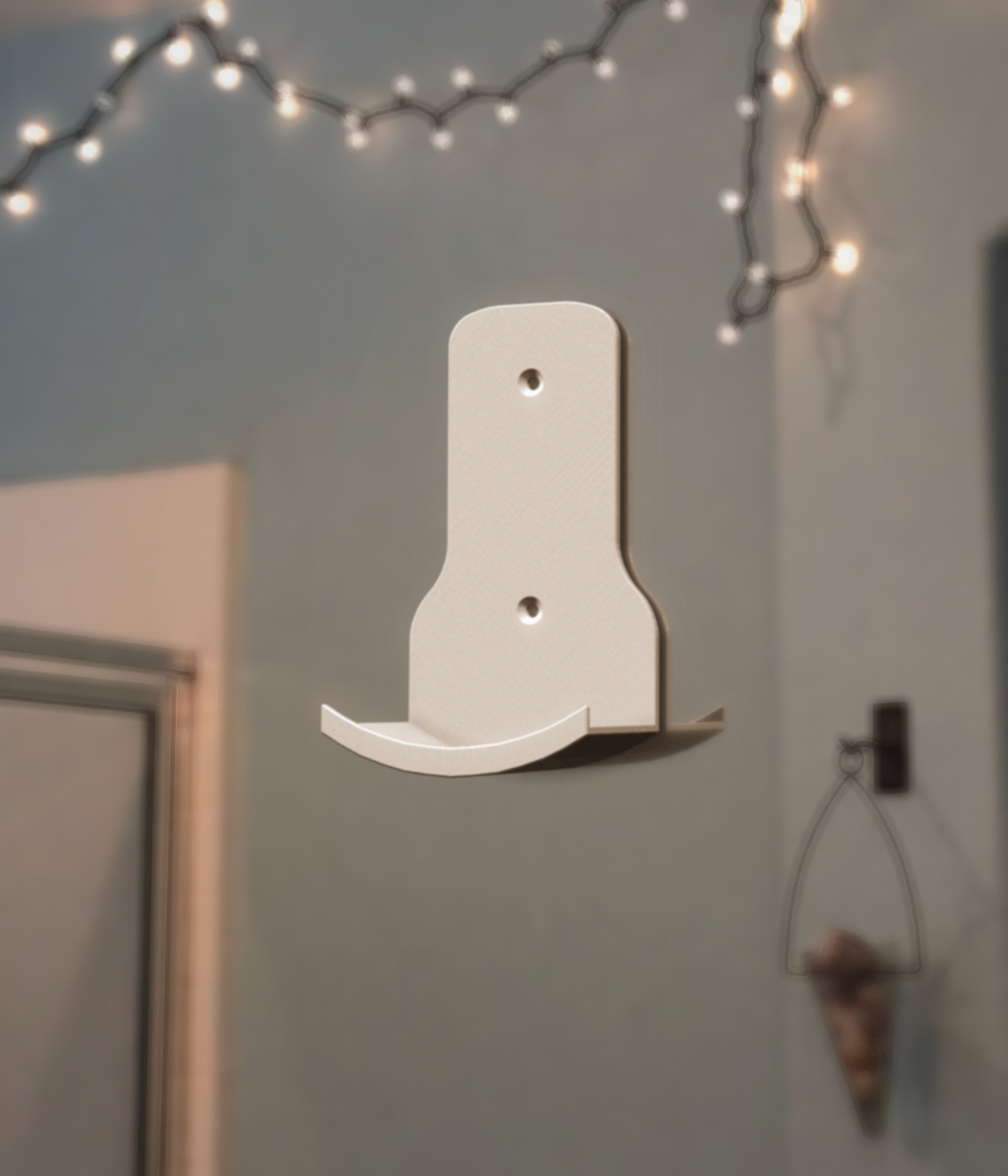 Giá treo tường tối giản dạng dọc để để xà phòng cạo râu và chai aftershave splash. Móc treo nghiêng nhẹ chống tuột, có bản chỉ SOAP và bản tương thích Multiboard. Gắn bằng keo, vít hoặc Command Strips.