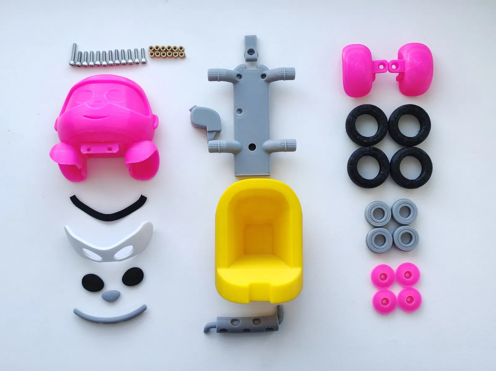 Phần đầu, kính chắn gió, lông mày, đế, thân xe, cản trước (bamper) và mâm (rims) được in kèm supports.