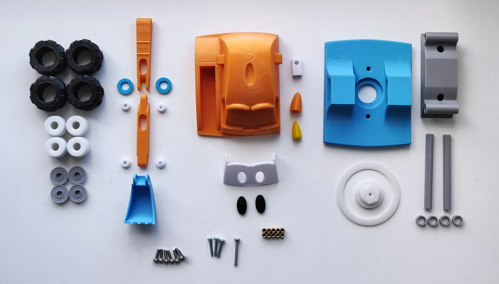 Các phần của mô hình được in với độ dày lớp (layer thickness) 0.2 mm, nhưng mình khuyên với các chi tiết như kính chắn gió (windshield), vành (rims), vòng bi (bearings), mắt, mũi và ống lót (bushings) thì nên giảm xuống 0.10–0.15 mm để nhìn gọn hơn và bền hơn. Số vòng vỏ (perimeters) 3, line width 0.5 mm, infill 10–20 %.