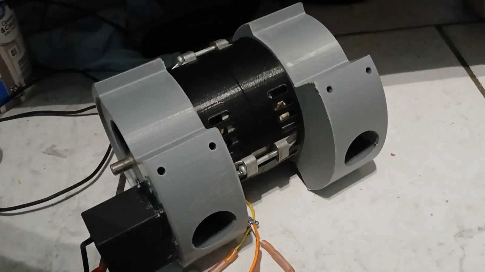 Chopper dùng tụ CBB61 10uf. Sau đó dùng keo nến (hot glue) dán nó vào stator 8 port. Mình dùng đầu nối mini wago để nối dây motor và dây tụ. https://a.co/d/06Pg4yEe Đây là tụ mình dùng.