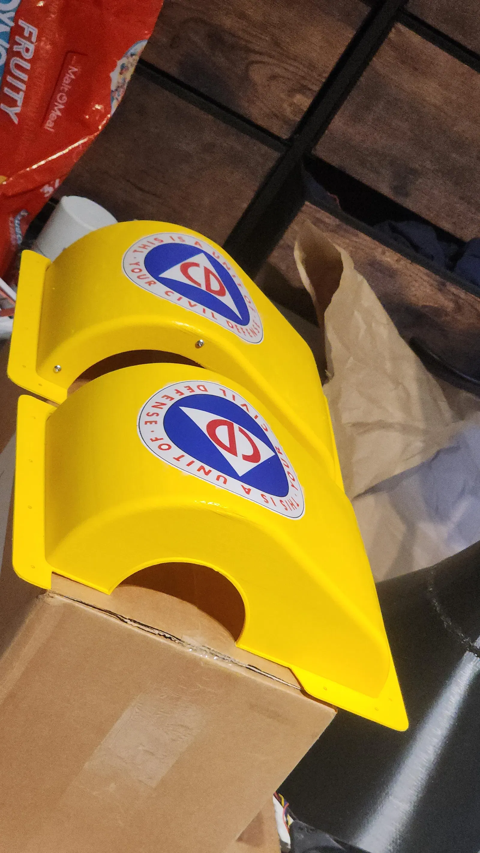 Demetrius là người làm logo Civil Defense ở bức hình cuối. Cứ thoải mái đem cái đó đi dịch vụ in sticker để dán lên nắp rotator nhé! Bạn cần in dạng hình tròn đường kính 5". Mình khuyên dùng Printmoz.com