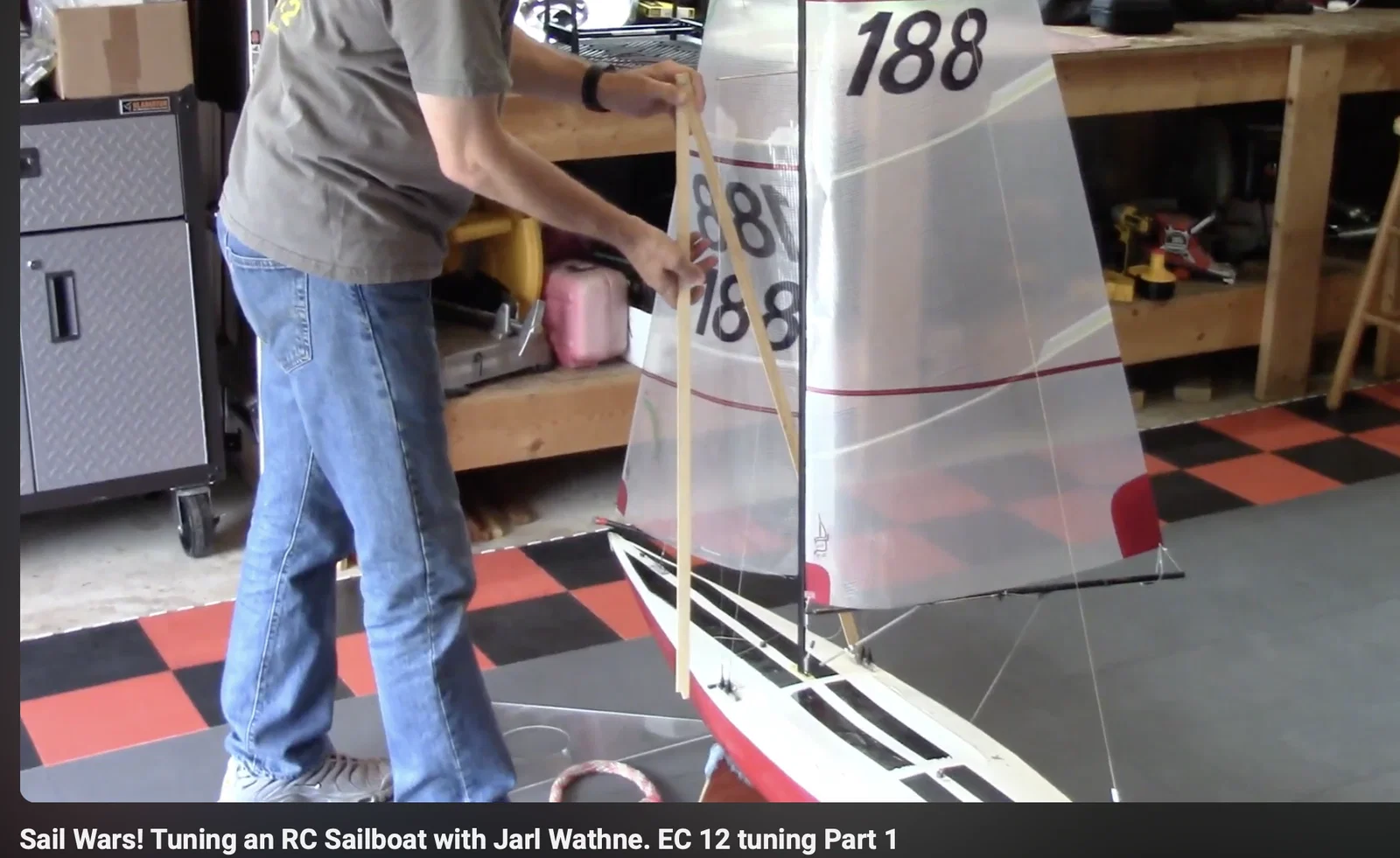 Mình xem một clip trên SailWars! có Jarl Wathne dùng một A Frame Mast Jig bằng gỗ để đảm bảo việc canh tâm mast EC12 theo trục thẳng đứng.