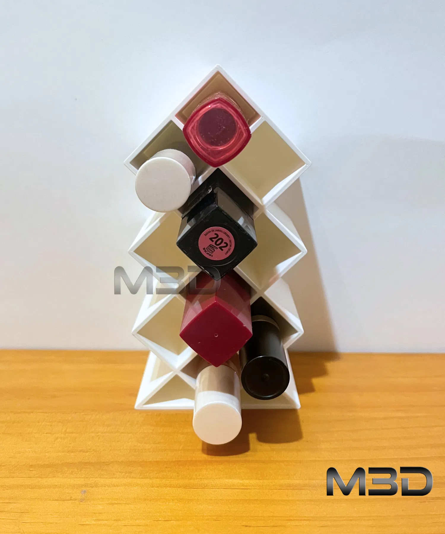 Mẫu display này cho phép bạn lưu trữ nhiều thỏi son một cách ngăn nắp, rất hợp để đặt trên bàn làm việc, bàn trang điểm, trong phòng tắm hoặc khu vực makeup. Hình khối đơn giản giúp in nhanh, ổn định và đáng tin cậy, còn kích thước gọn giúp tiết kiệm diện tích.