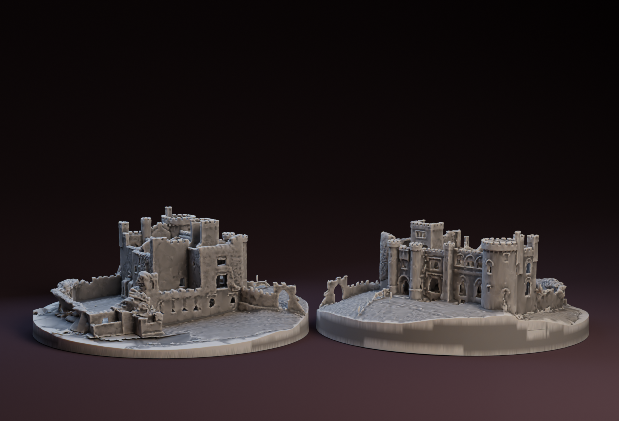 Chi tiết model: Bản tái dựng 3D này tái hiện đúng hiện trạng đổ nát hiện nay của lâu đài, thể hiện bề mặt đá bị phong hoá và phần nội thất rỗng đặc trưng của địa điểm ở thời điểm hiện tại.
