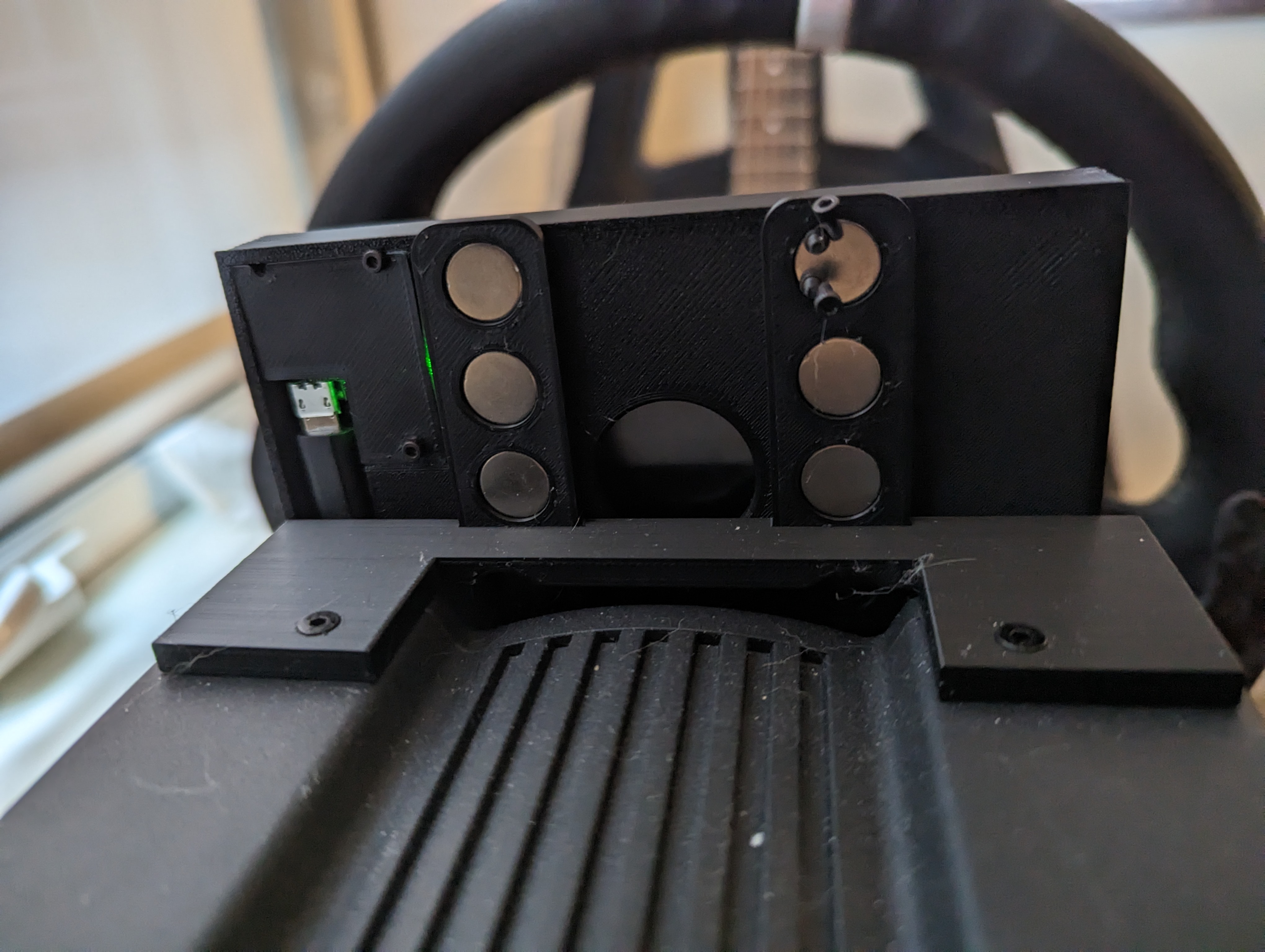 Mẫu giá đỡ/vỏ cho màn hình Vocore 5" để gắn lên Moza R9. Hỗ trợ lắp nam châm 12mm (có thể chồng 2 nam châm mỏng) và dùng vít M2x4mm tuỳ theo tấm trước/sau; có lỗ giữa để đẩy màn hình ra.