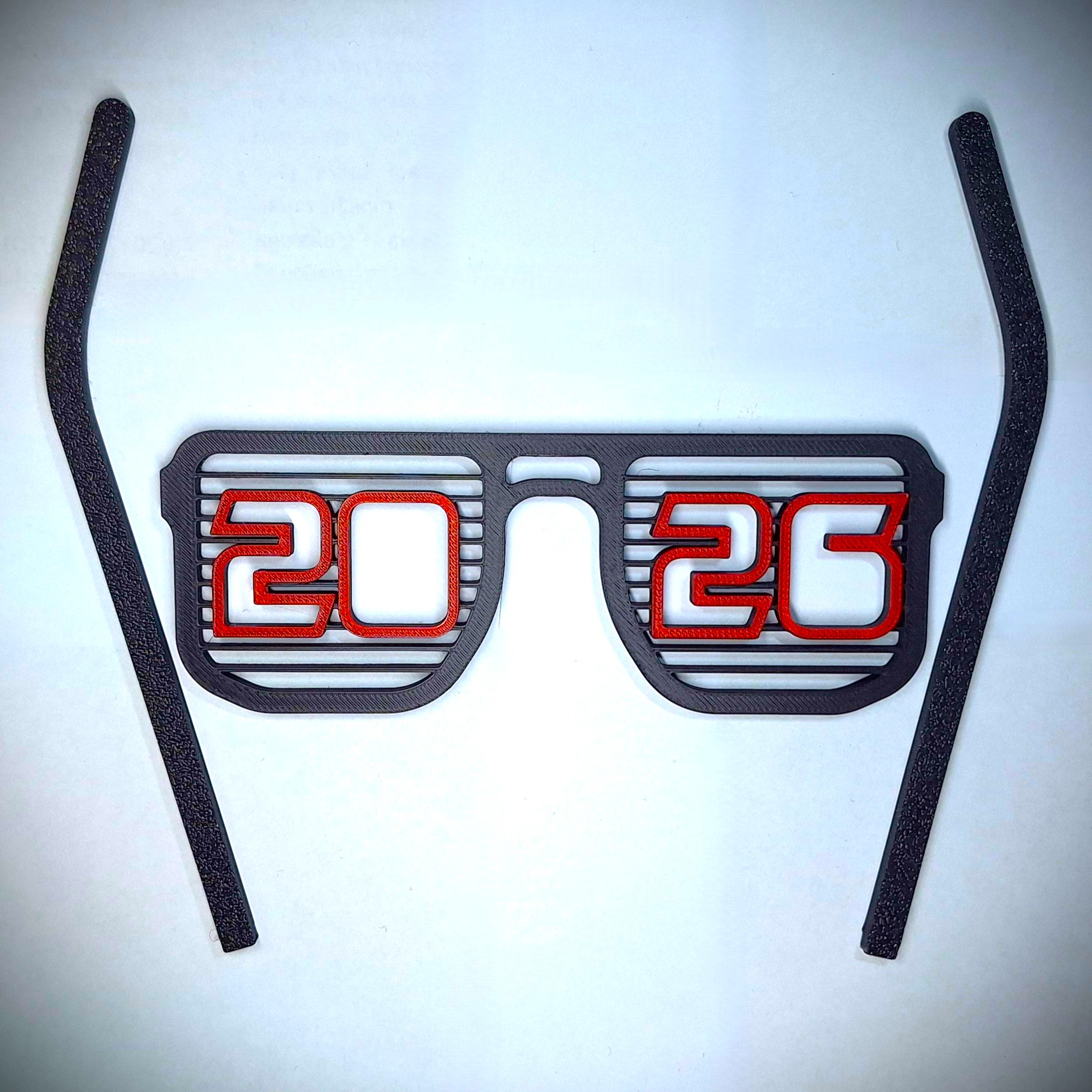 Mẫu kính New Year 2026 phong cách retro, dùng lại kiểu gọng classic năm ngoái. Lắp ráp đơn giản: gắn “ears” vào đế kính là khít chắc. Hỗ trợ in multi-color: đặt pause trong slicer (0.2mm: layer 21).