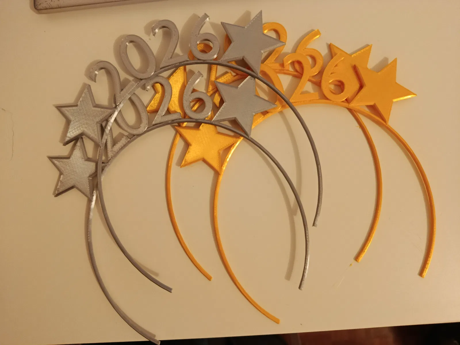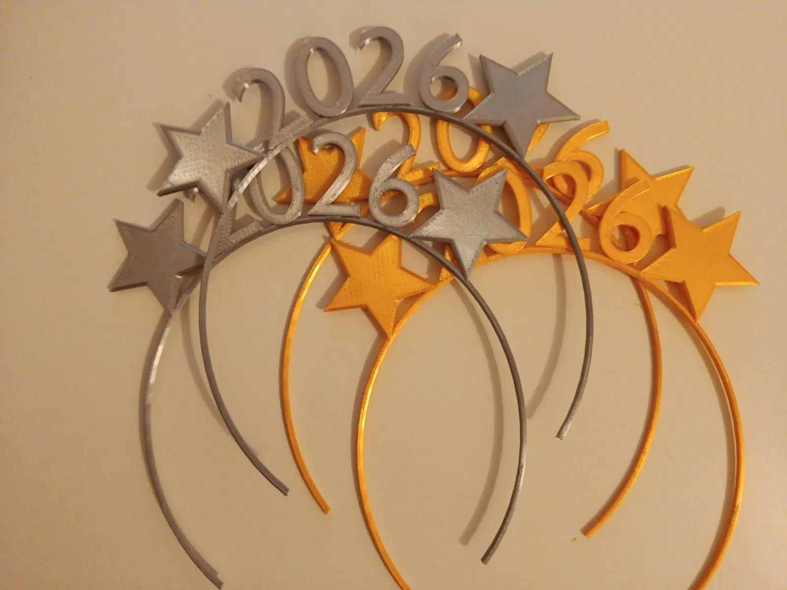 Băng đô 2026 chủ đề Năm Mới để bạn diện chúc mừng năm mới. Mẫu in 3D không cần supports; nếu bám bàn in chưa tốt thì nên thêm brim để in ổn định hơn.