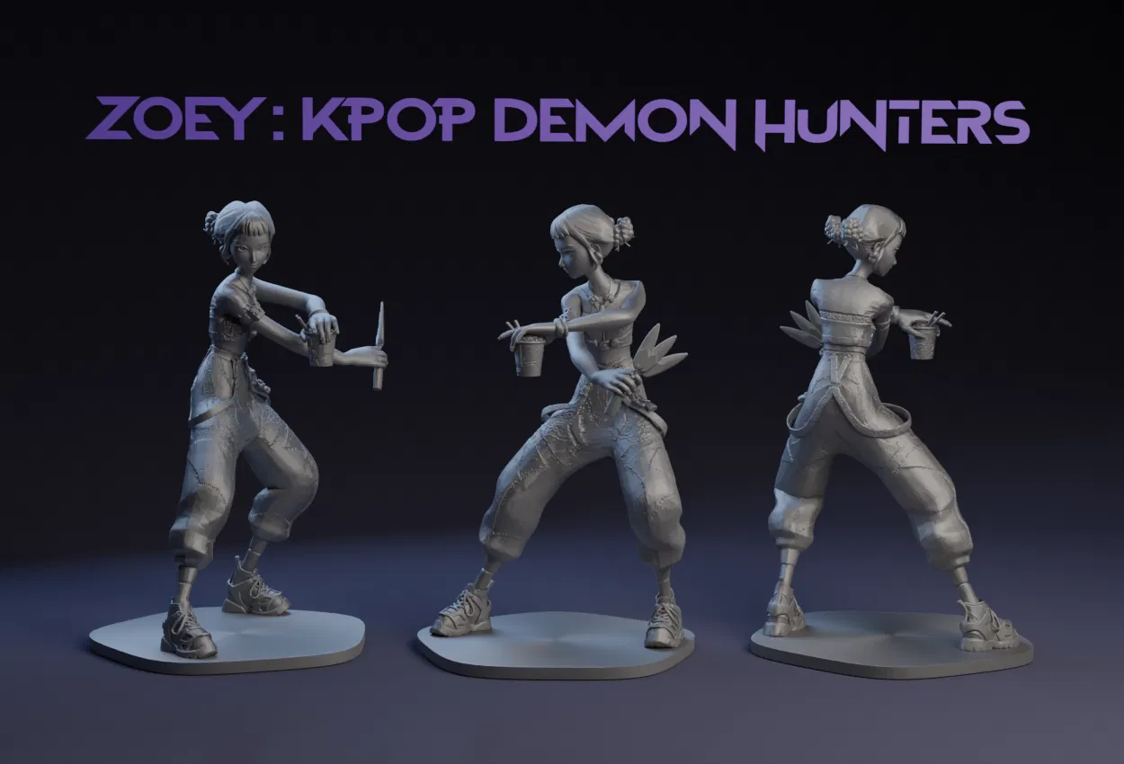 Mẫu 3D Zoey trong “K-pop Demon Hunters”, không dùng AI. Nội dung kèm thông tin để tải phiên bản độ phân giải cao của ly ramen (ramen cup) được nhắc trong mô tả.