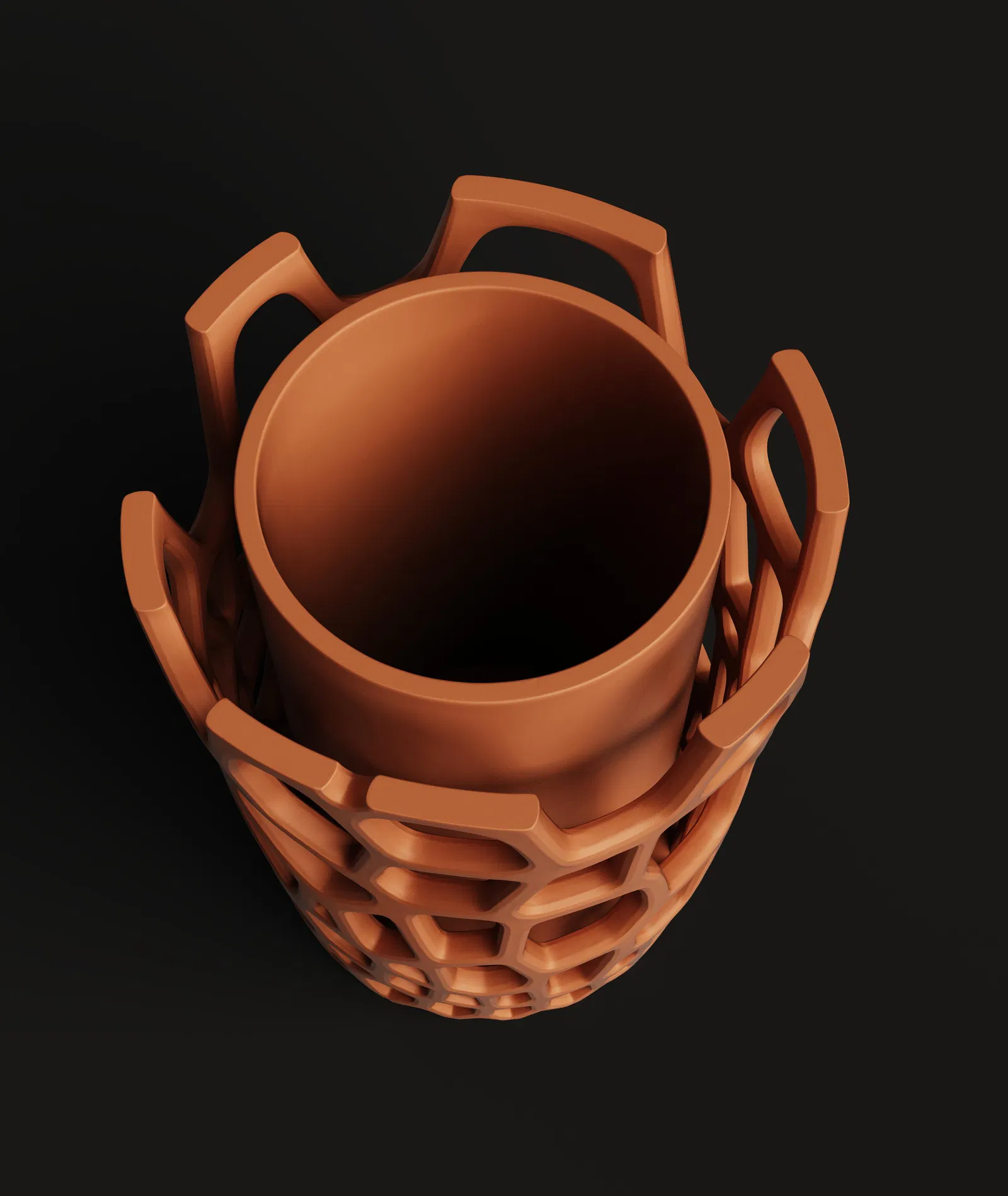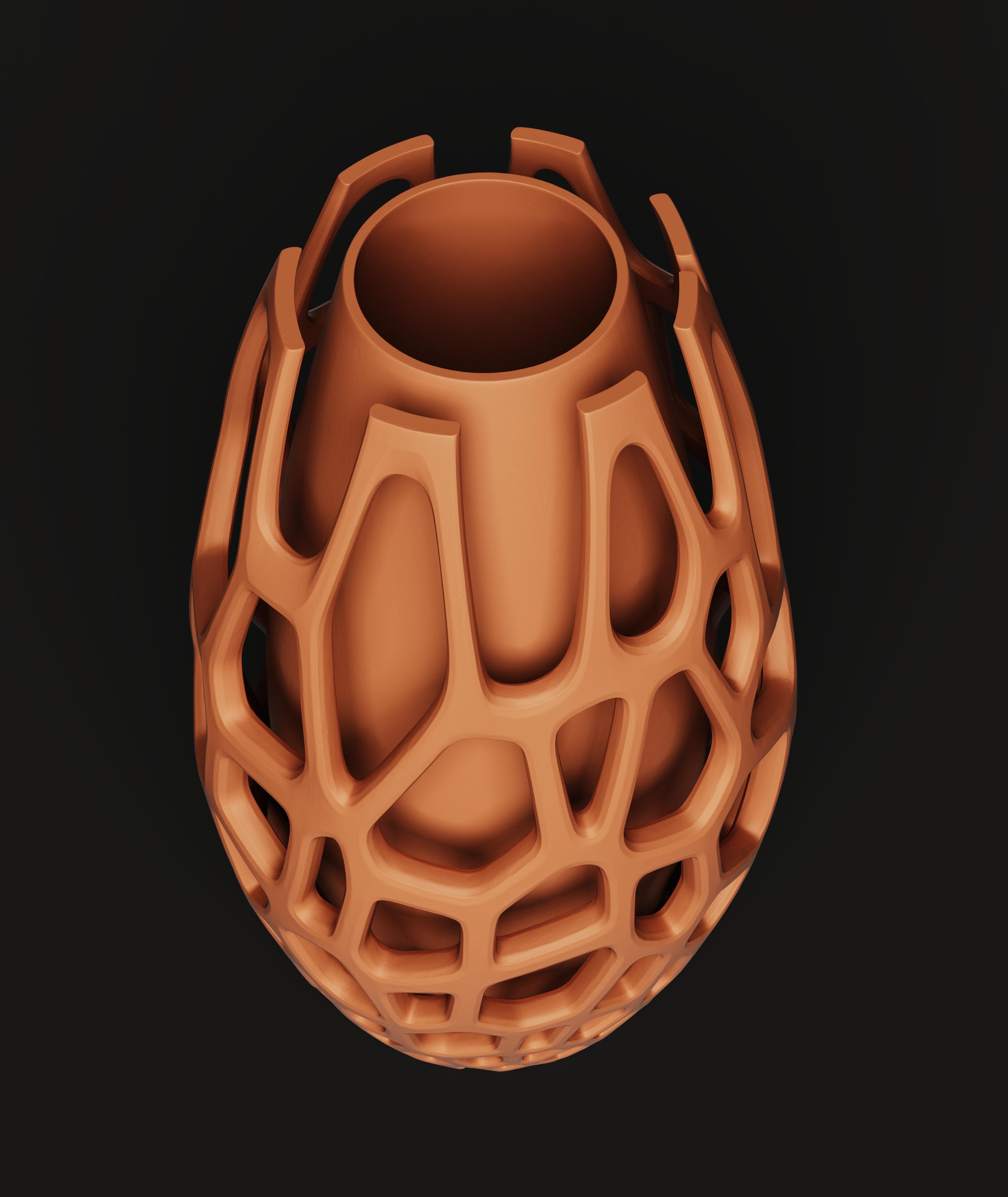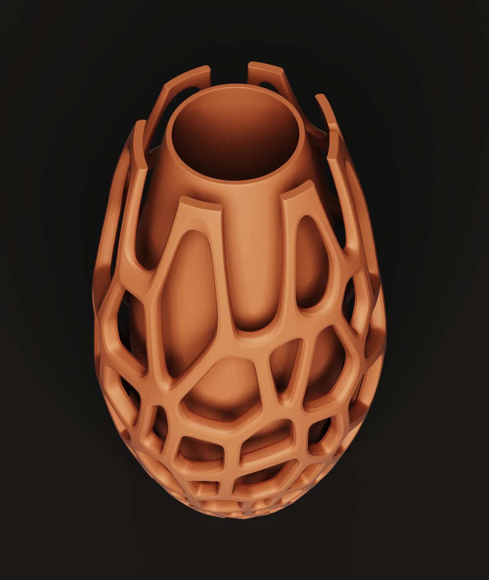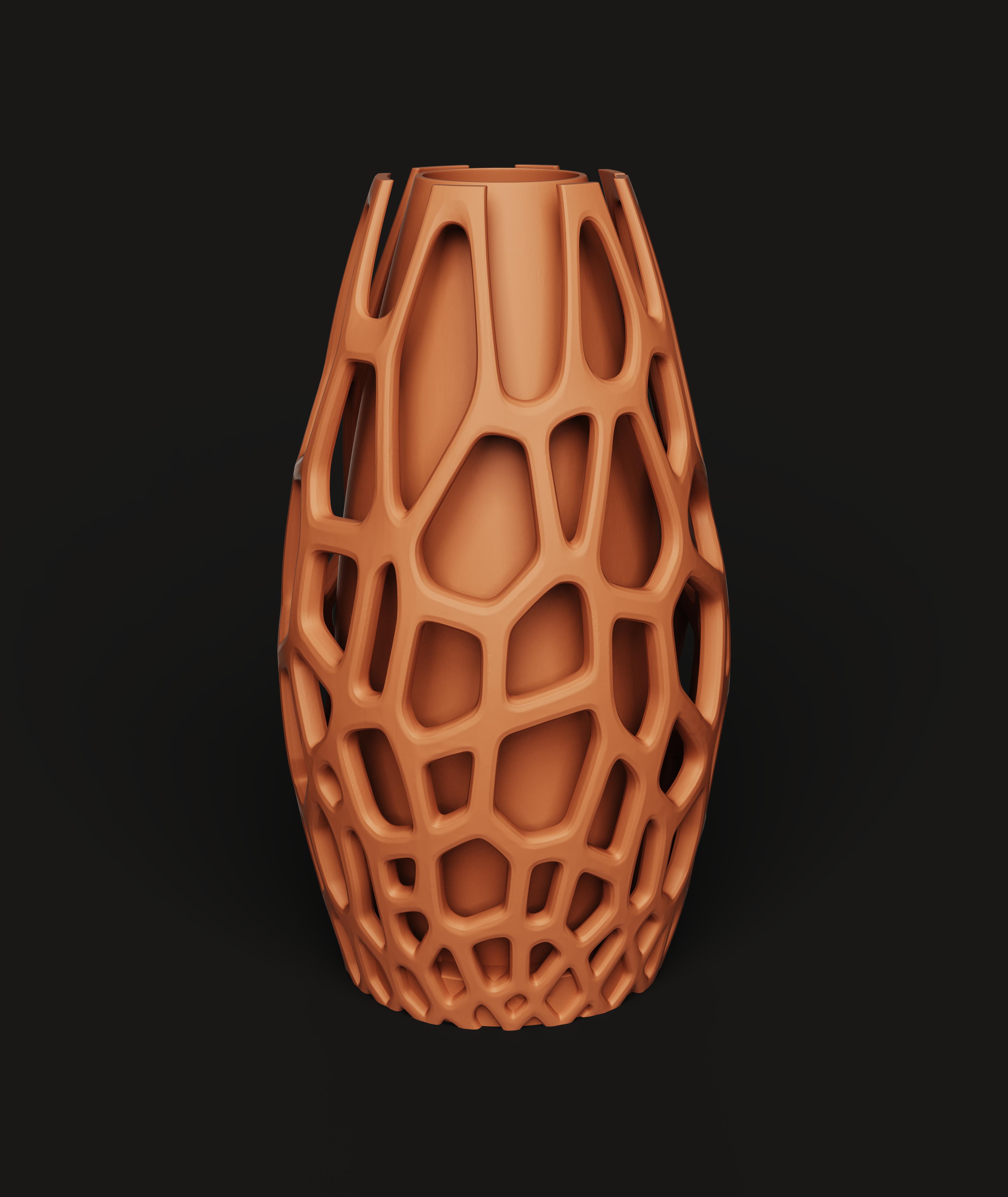Bộ chậu Voronoi hình học với thiết kế lưới organic tạo hiệu ứng ánh sáng–bóng đổ đẹp mắt, giúp succulent và cây nhỏ nổi bật như decor nghệ thuật hiện đại. In FDM PETG, có Vase Mode hoặc bản mesh, kín nước.