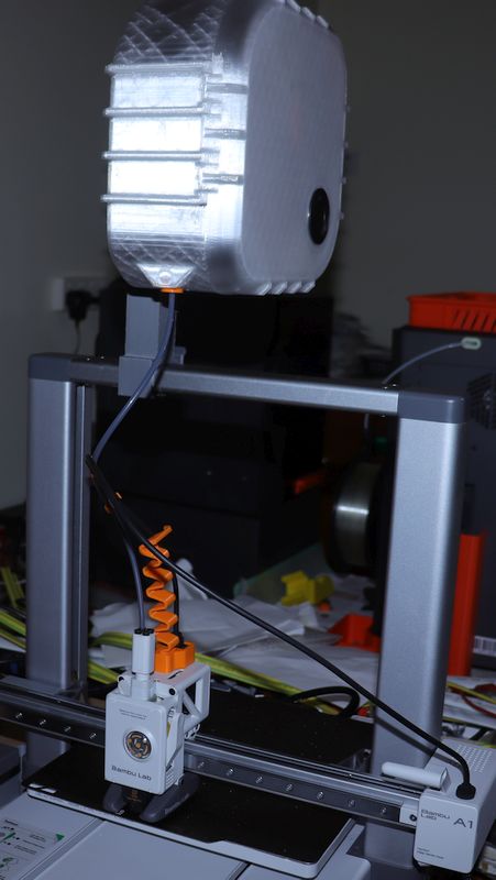 Mình tìm thấy phần kẹp tại https://makerworld.com/en/models/995840-a1-low-friction-spool-holder#profileId-972133. Cảm ơn bạn thiết kế (mình không đọc được tên). Mình đã cắt nó ra khỏi phần frame, và tách các chi tiết để tránh rủi ro của các chi tiết print-in-place.