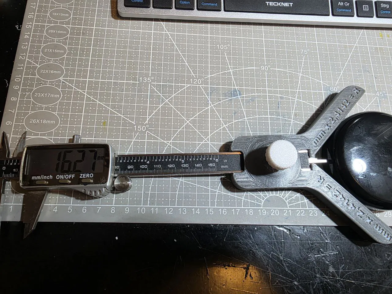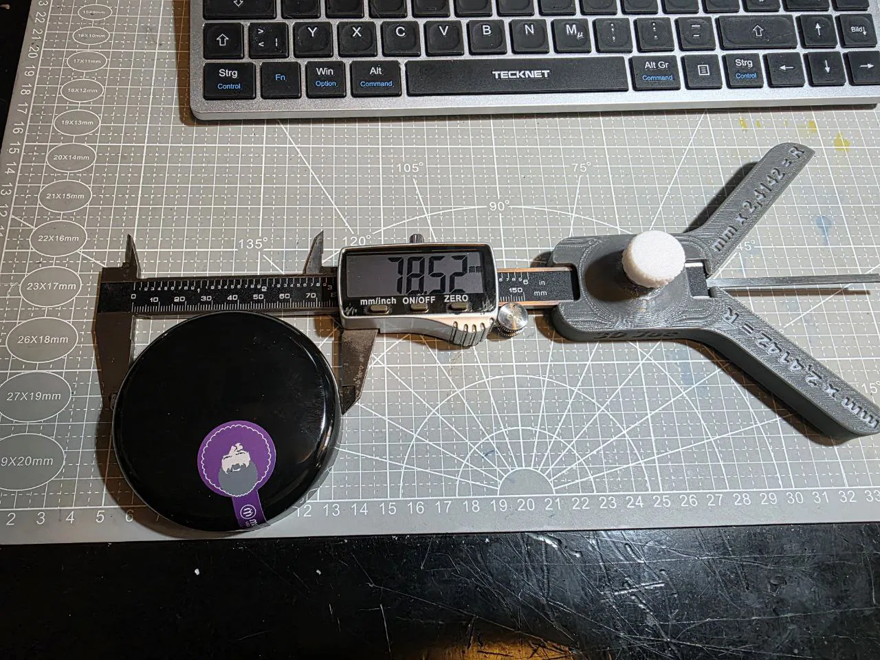Radius Messvorrichtung là thiết bị đo bán kính: lấy giá trị đo được (mm) nhân 2,4142 để ra bán kính tương ứng. Phù hợp làm đồ gá/đo nhanh khi cần kiểm tra bán kính trên chi tiết.