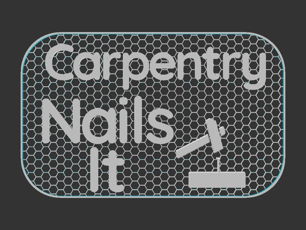Biển hiệu 3D 100x160mm với hình cây đinh đang được đóng và chữ “Carpentry nails it”. Có file Mesh và Solid, khuyến nghị color switch trên 1mm (như gcode kèm). Lắp vừa Shadowbox Frames.