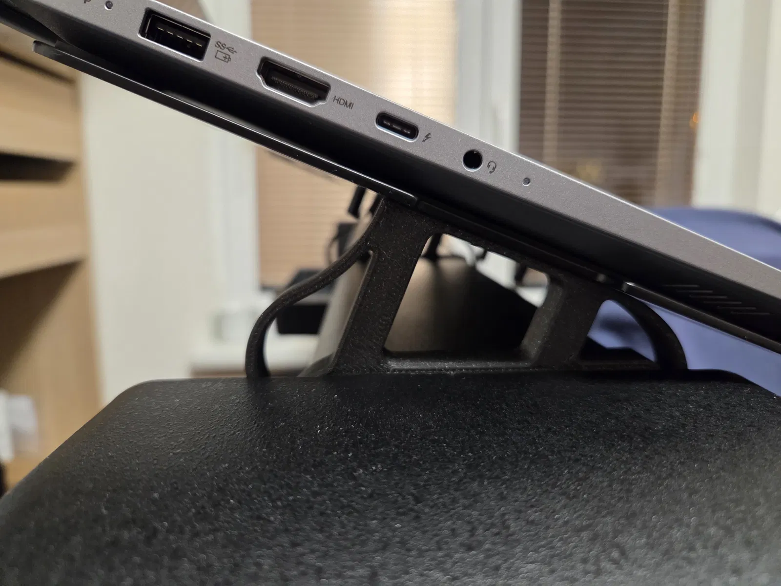 Mình làm cái bracket này để gắn vừa với giá đỡ laptop Alza Ergo O30x. Bracket này cao hơn chút so với bản cho GCC vì cần chừa khoảng trống để lắp các điểm bắt VESA nằm giữa cái stand và mặt trên của máy plotter (phiên bản model 1).