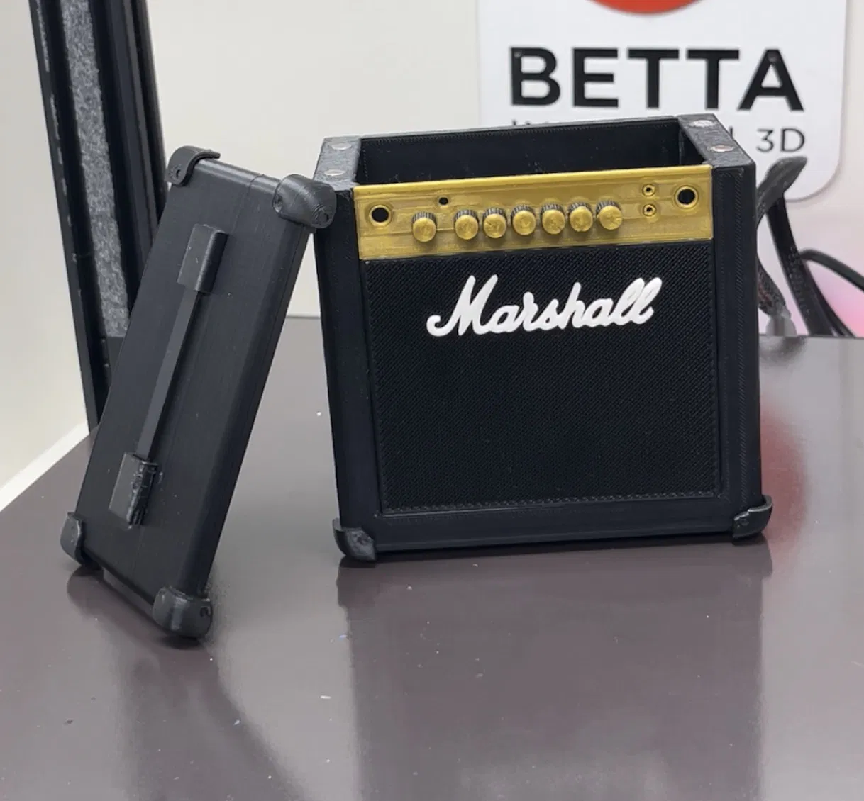 Bản sao của bộ khuếch đại Marshall, nó được sử dụng để lưu trữ một số thứ nhỏ, vì nó có nắp nam châm.