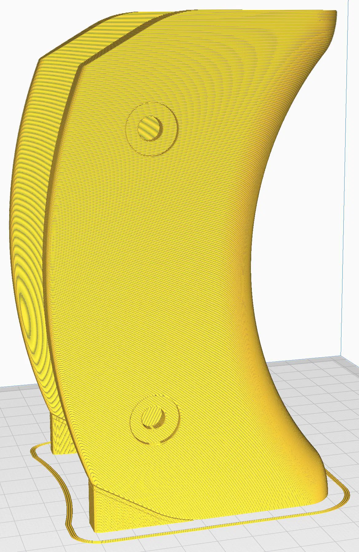 Khi in, nên chỉ bật support dạng “touching build plate” (support chỉ chạm vào build plate). Để tăng độ bền, dùng 5 wall lines. Mẫu được tối ưu để in theo tư thế dựng đứng trên cạnh bên (xem hình phía trên).