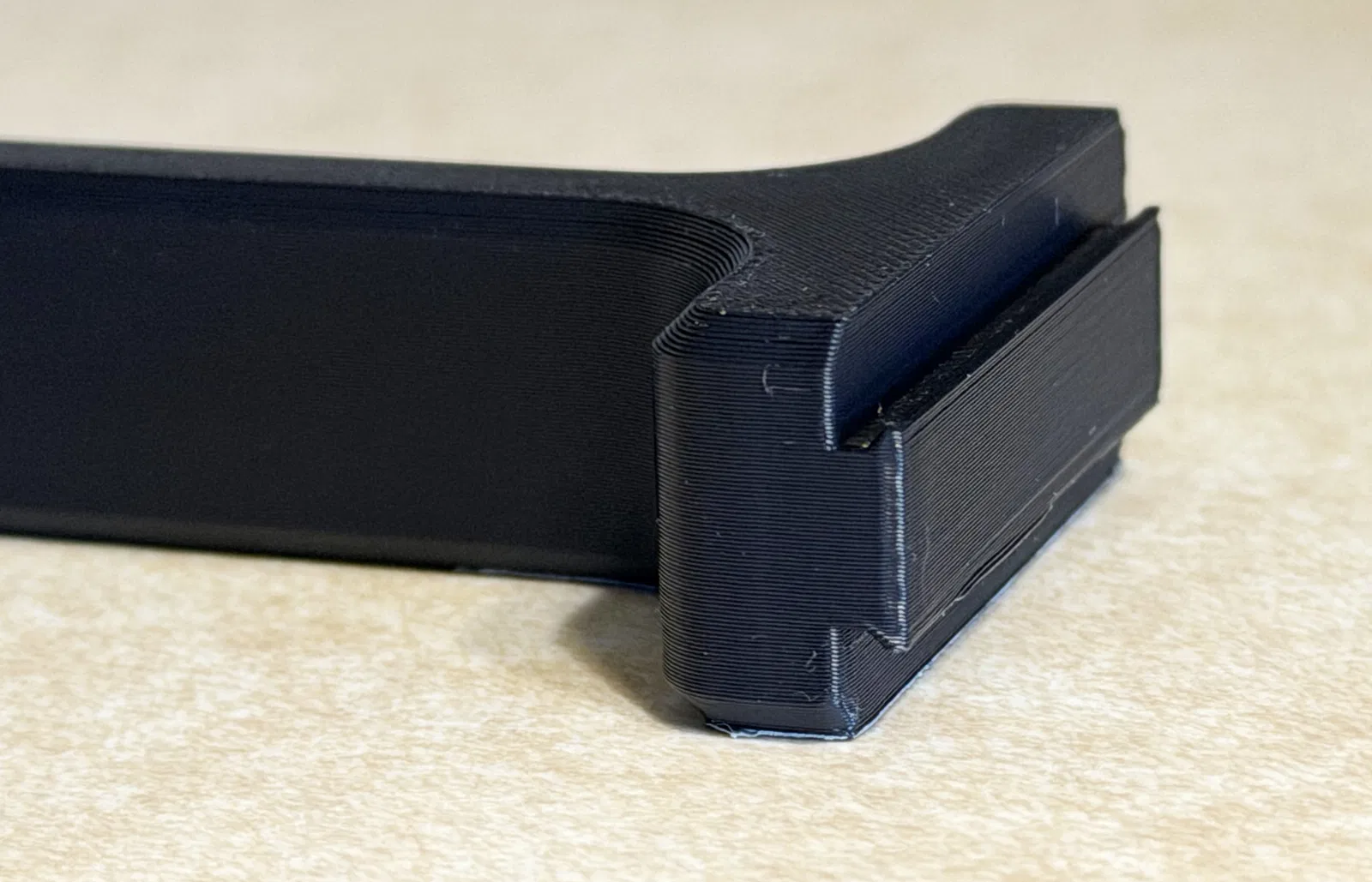 Phần hook nên in nằm nghiêng (in trên cạnh) và sẽ cần support cho mép dưới của dovetail. Mình có kèm một bản có support thiết kế sẵn, và một bản khác có support thiết kế sẵn kèm mouse ears để giảm cong vênh và hạn chế bị kéo bong khỏi bed với các vật liệu dễ warp hơn (như ASA).