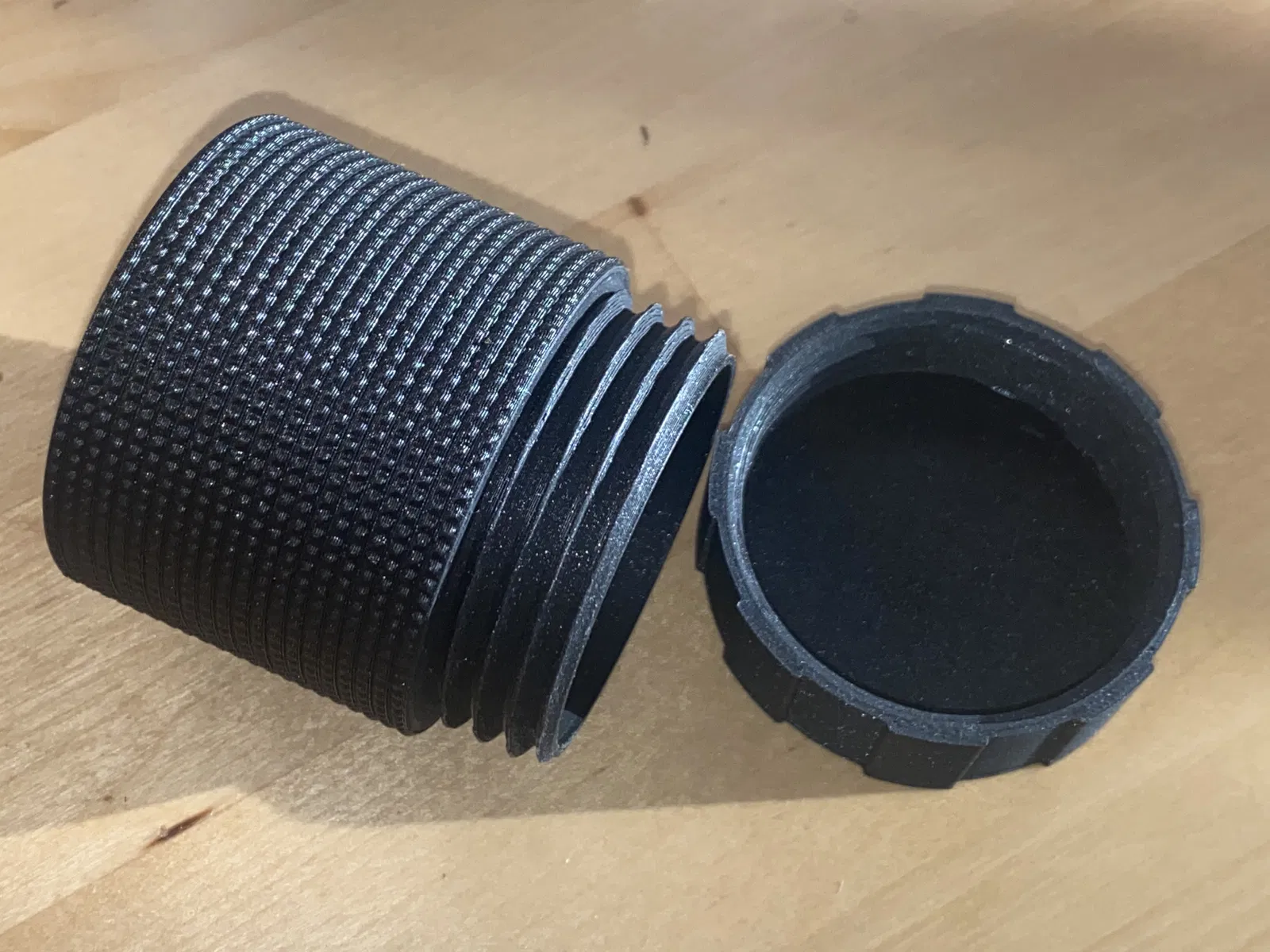 Thân hộp (dose) trong file in 3D này được làm nhám với texture thay vì bề mặt trơn, giúp tăng độ bám khi cầm nắm và vặn mở. Phù hợp làm hộp đựng đồ nhỏ, dùng nắp vặn.