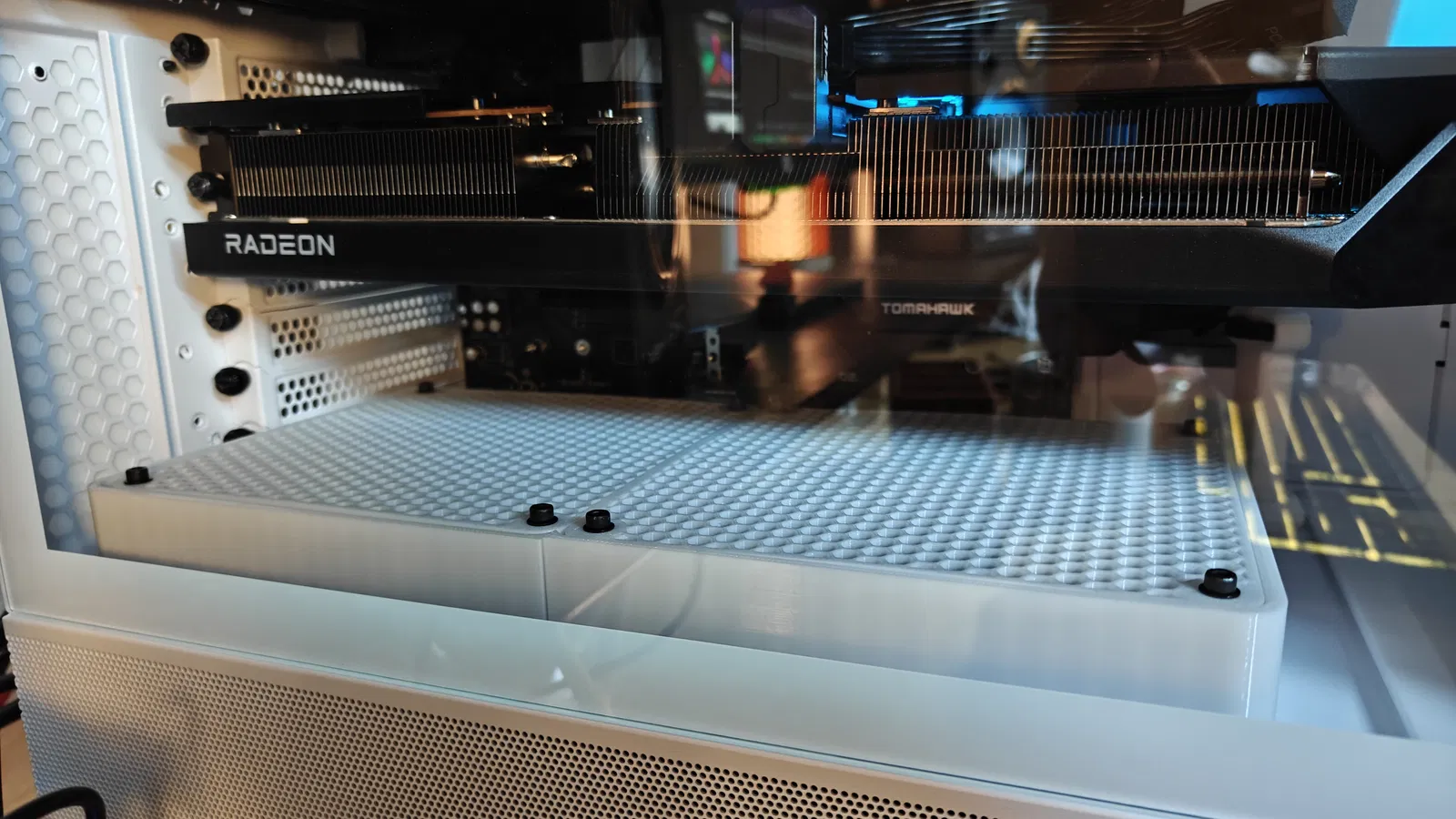 ℹ Đây là một cái frame để che phần hông (hai bên) cho 2 quạt 140 mm đặt liền hàng. Anh/chị dùng slicer để split model ra làm hai nửa. In xong có thể lắp theo đường split, hoặc dán keo lại cho liền khối.