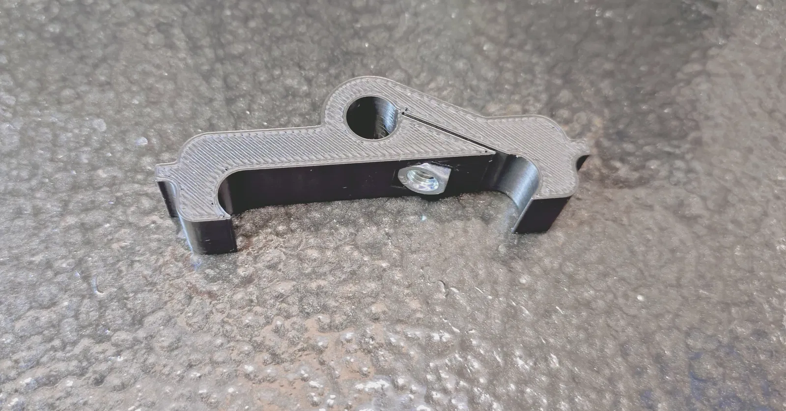 Phụ kiện cho máy tiện Emco Unimat, cho phép gắn dial gauge có trục ~8 mm lên trục X. Cần thêm ê-cu M5 và vít lục giác dài khoảng 20 mm; lỗ núm thiết kế khít nên phải xoay và ấn vít để lắp.