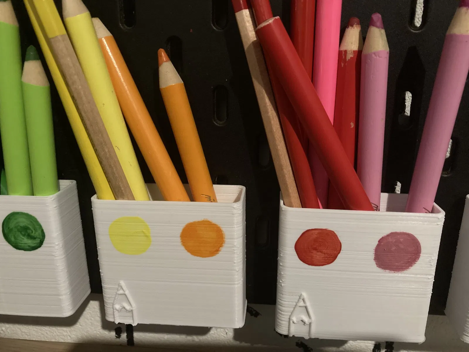 Chủ sở hữu cho bút chì cho bảng điều khiển IKEA Skadis, chèn là tùy chọn cho sự tách biệt của màu sắc.