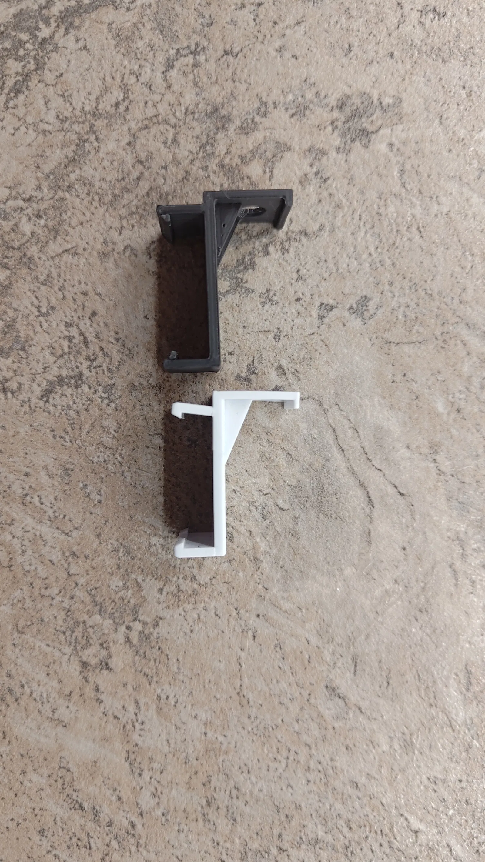 Ba mẹ nhờ mình thiết kế và in vài cái để thay thế, lấy cái kẹp zin làm chuẩn kích thước (cái zin là cái màu trắng trong hình). Mình làm ra hai phiên bản nhưng bản đầu tiên bị quá chặt. Bản thứ hai (cũng là bản mình đang upload) nới lỏng hơn một chút và dùng đúng như mong muốn.