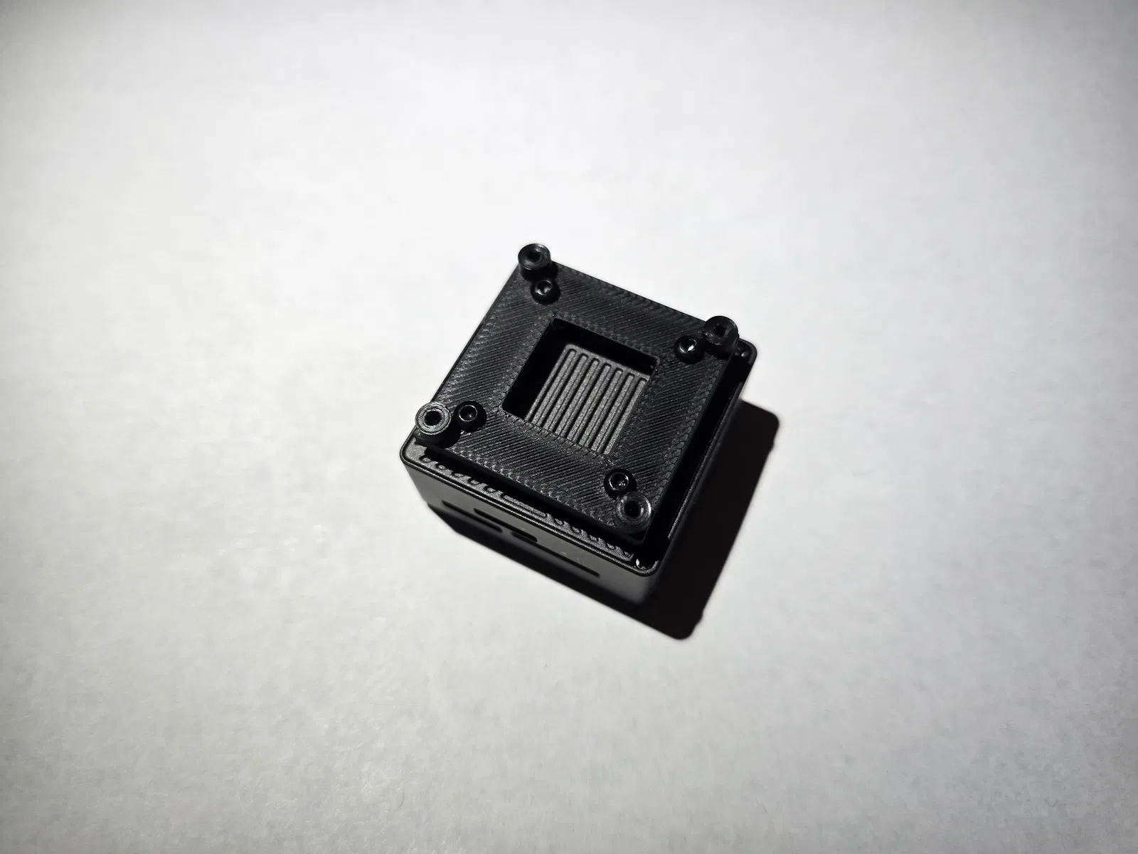 In bằng PLA, infill 100%, đặt mặt base plate úp xuống, các standoff hướng lên trên.