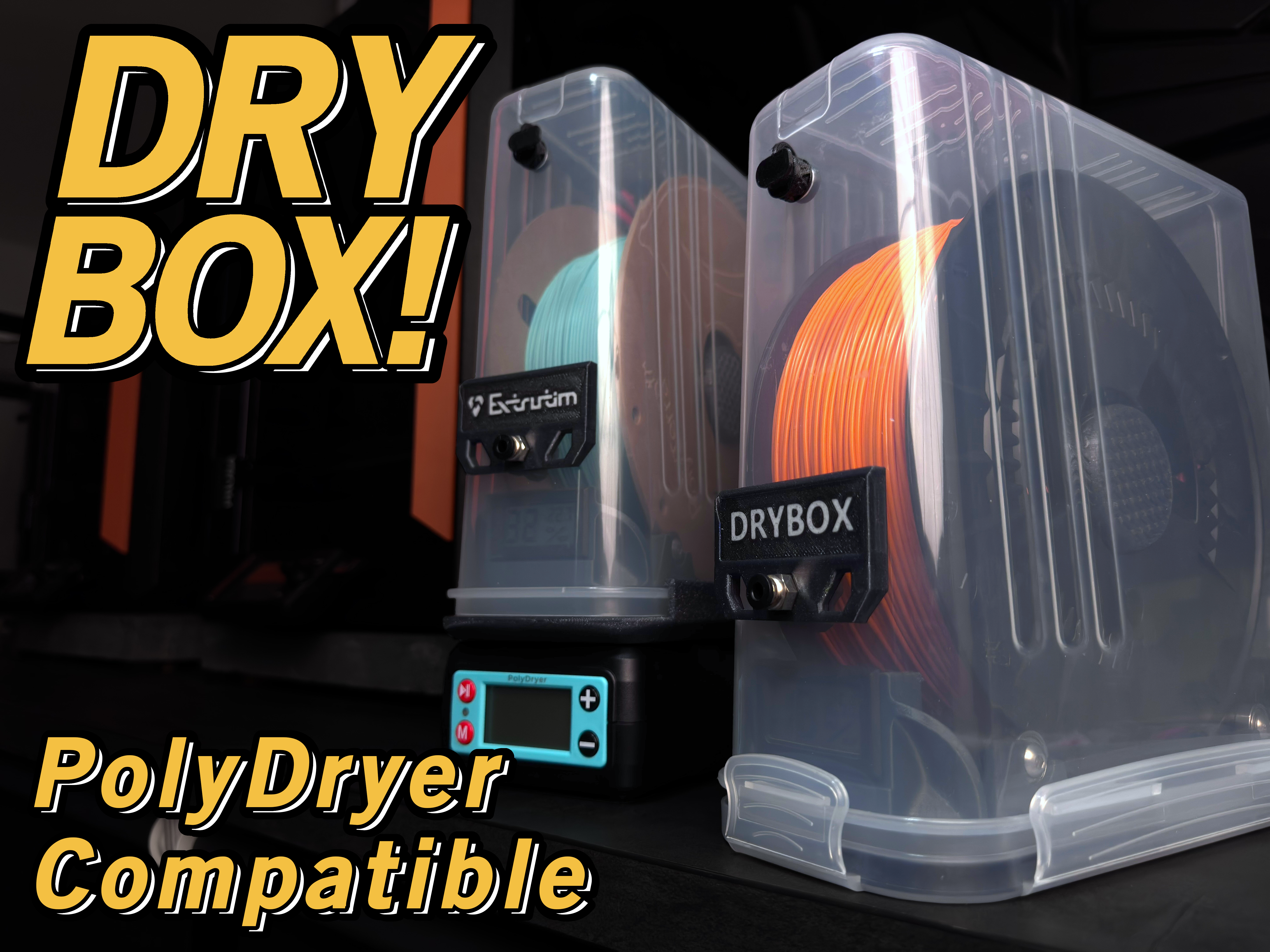 Drybox giá rẻ dựa trên hộp PP 4L, kín ẩm, ít tốn filament (~90g) nhưng vẫn đủ tính năng: hygrometer, bi dẫn cuộn, chứa silica gel, hỗ trợ cuộn tới 70mm. Có adapter rời để gắn với Polydryer.