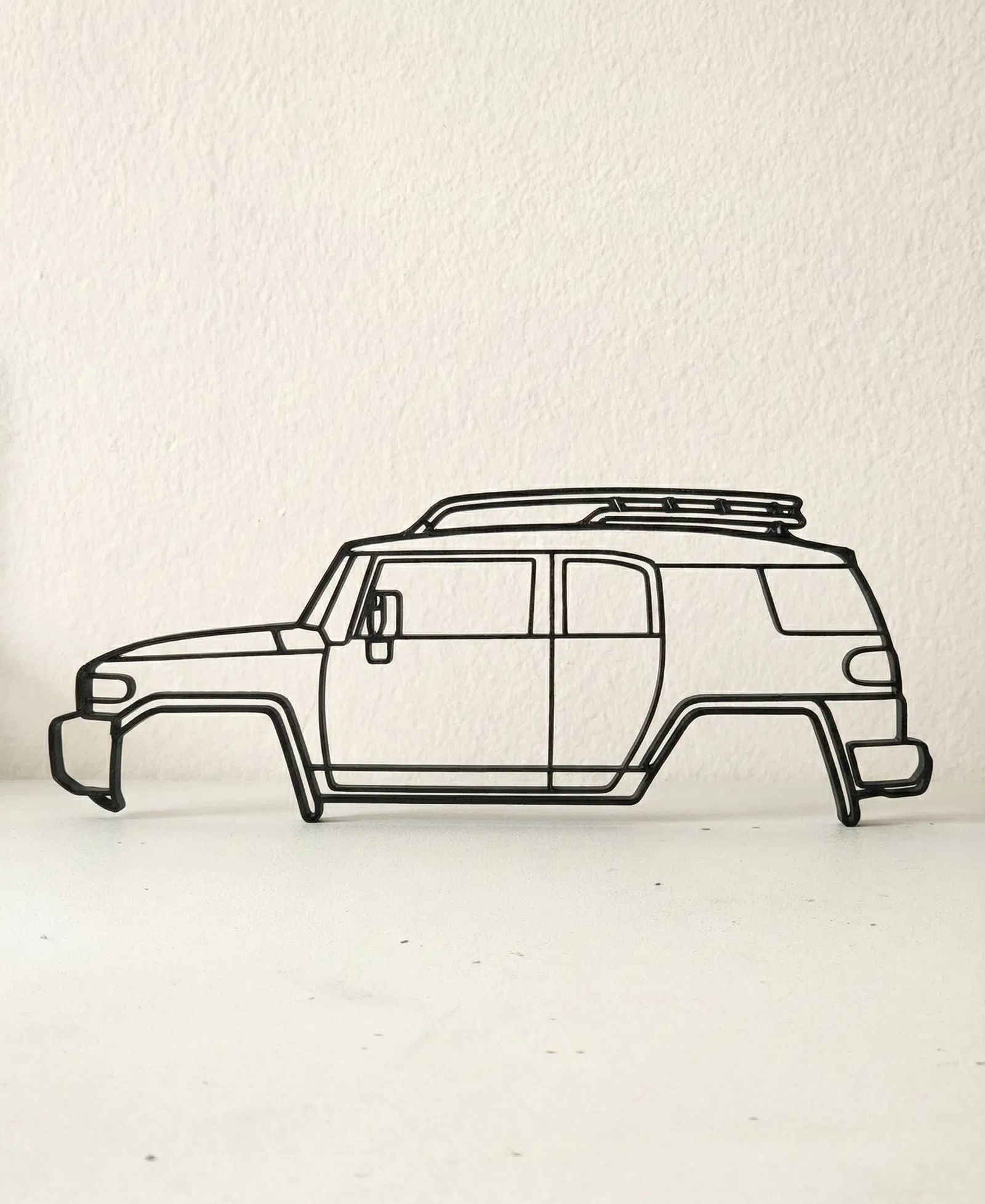 Mẫu Toyota FJ Cruiser 2D Wall Art dạng outline, phù hợp làm tranh treo tường phong cách offroad. Thiết kế gọn, dễ phối với nhiều không gian trang trí, đặc biệt cho fan Toyota FJ Cruiser.