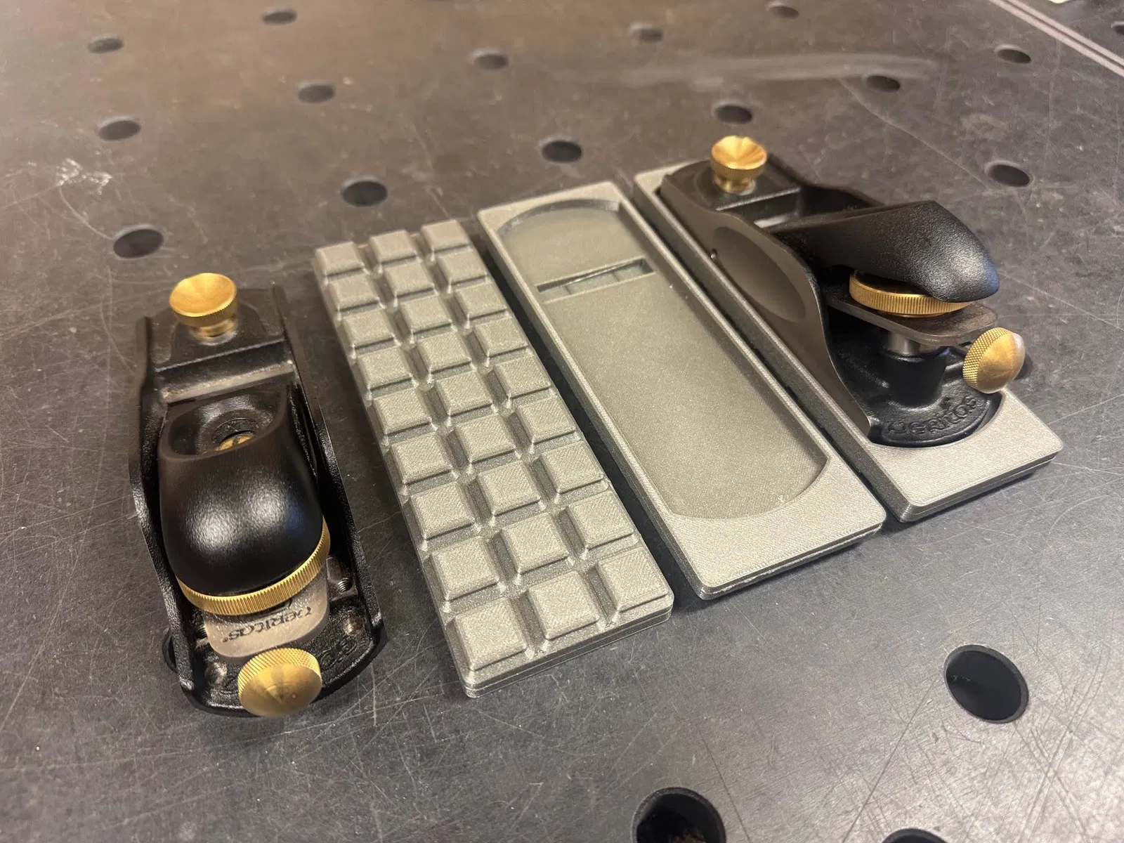 Khay/holder tương thích Gridfinity dành cho Veritas blockplane, dùng được cho cả bản góc thường và góc nông (shallow angle). Thiết kế profile thấp, footprint gọn và grid nửa-size để dễ nhấc và sắp xếp.