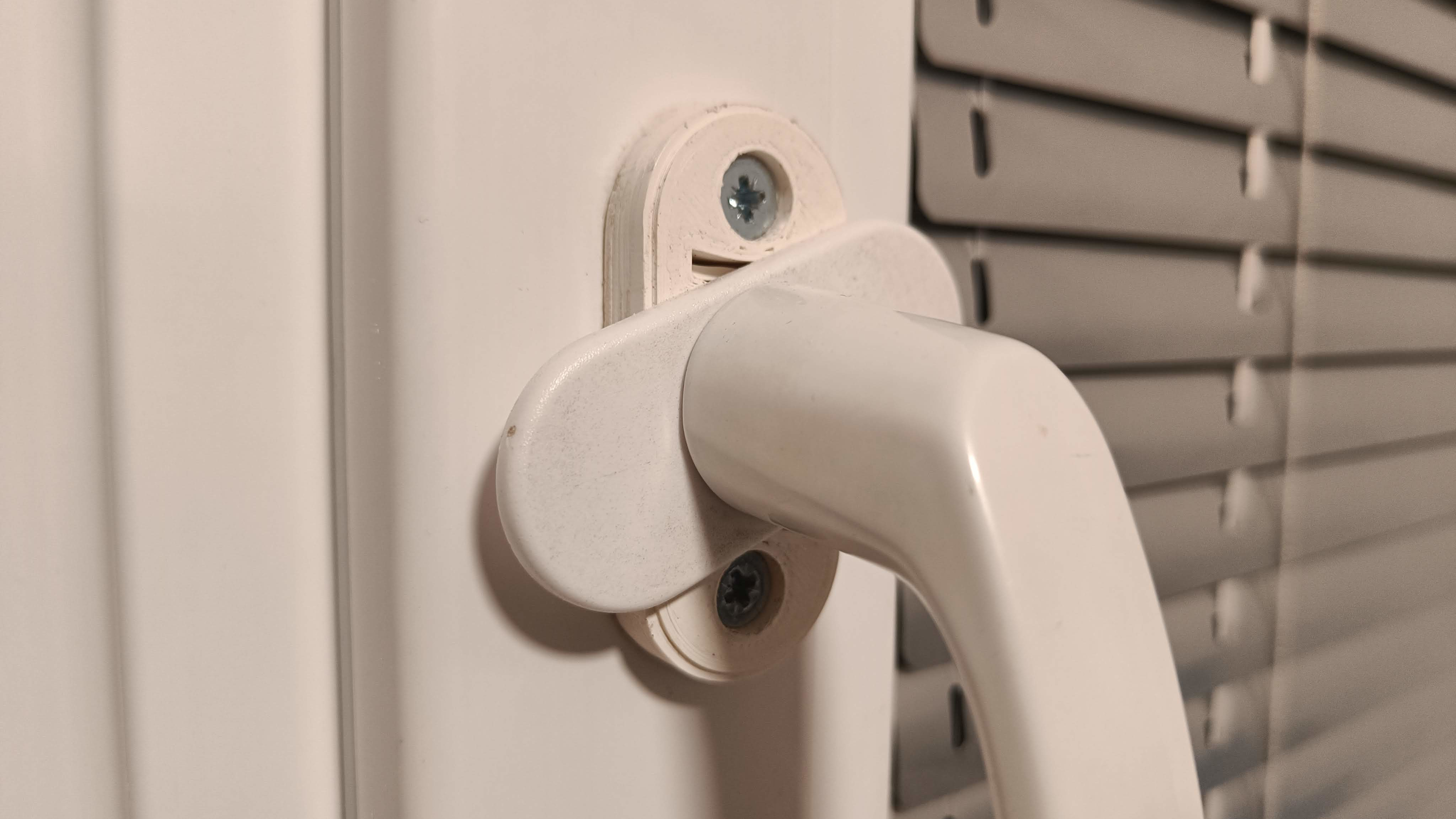 Bộ chi tiết thay thế cho tay nắm cửa sổ nhựa, tương thích trục vuông 7 mm và vít M5 đầu chìm cách nhau 43 mm. Thiết kế bằng FreeCAD, có gợi ý thông số in (ASA, infill, supports).