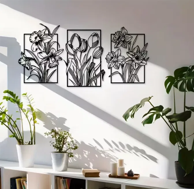 Bộ 3 mẫu tranh treo tường hình hoa, phù hợp để in 3D và trang trí nhà cửa. Thiết kế gồm 3 bông hoa khác nhau, dễ phối theo bộ hoặc treo riêng tuỳ không gian.